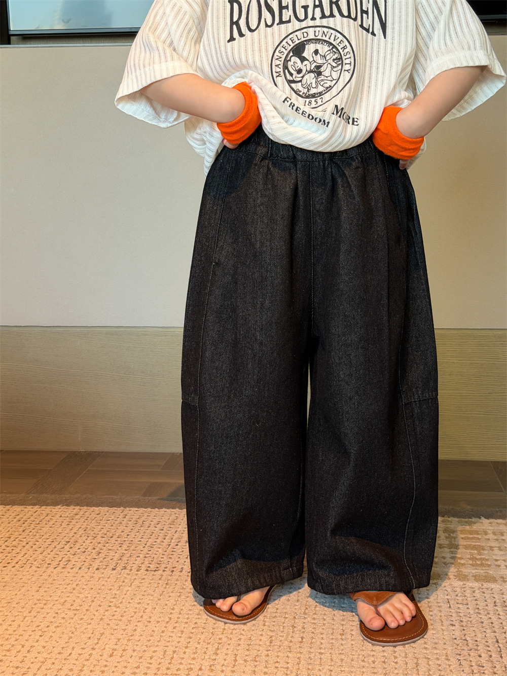 【90-150cm】ワイドデニムパンツ キッズ 無地 男女兼用 カーブデニム ゆったり カジュアル 子供服¥3,320 JPY¥5,325 JPY