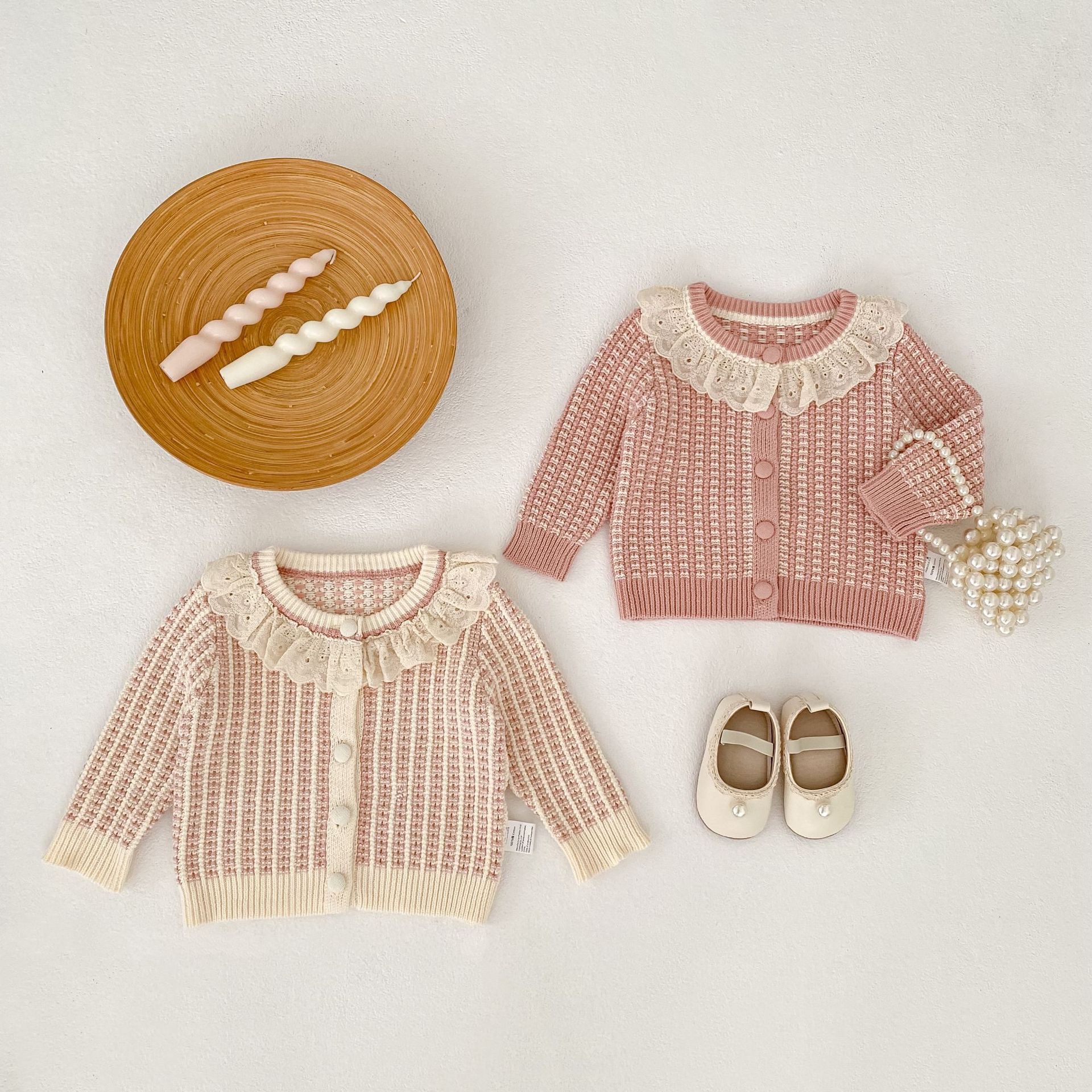【66-100cm】ニットカーディガン レース襟 可愛い¥3,580 JPY¥5,489 JPY