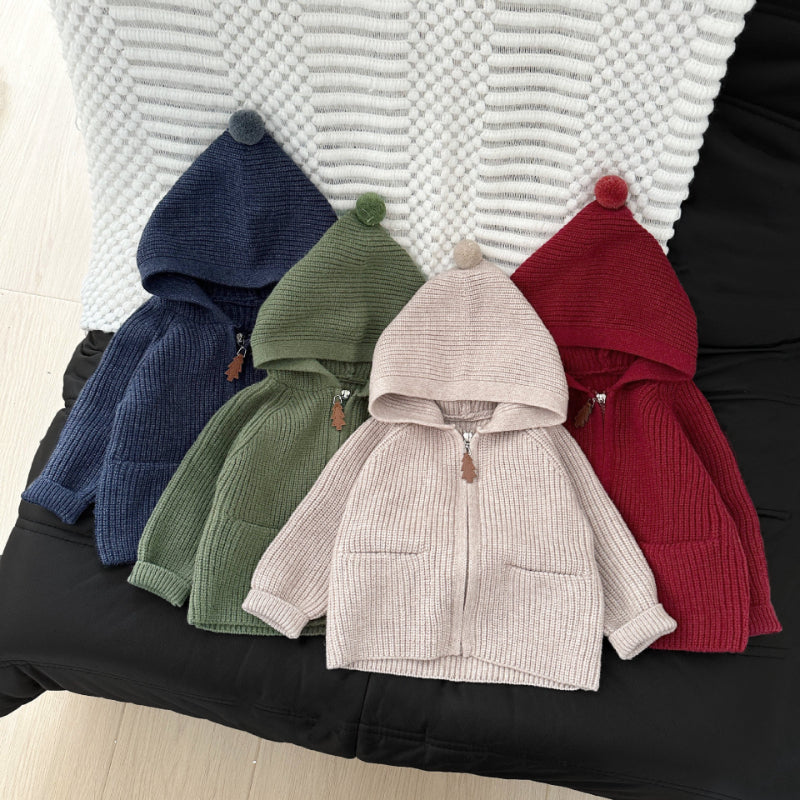 【73-110cm】 無地 フード付き ニット カーディガン¥2,194 JPY¥3,990 JPY