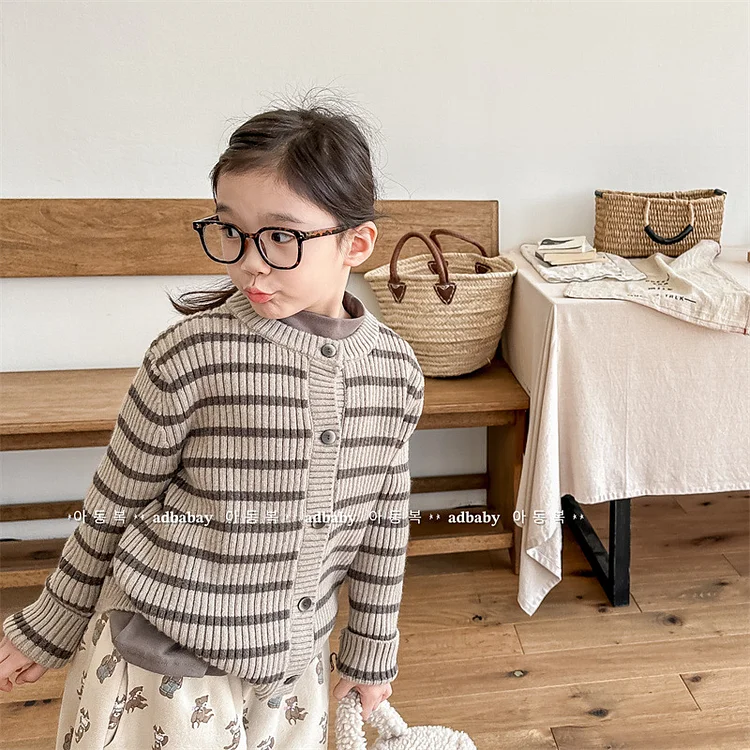 【80-150cm】 ボーダー柄 ニット カーディガン¥3,590 JPY¥5,642 JPY