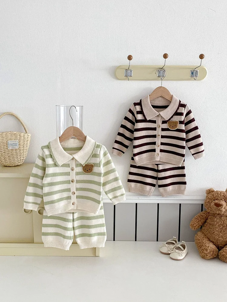 【66-90cm】 ボーダー ニット カーディガン&パンツ セット¥2,682 JPY¥4,470 JPY
