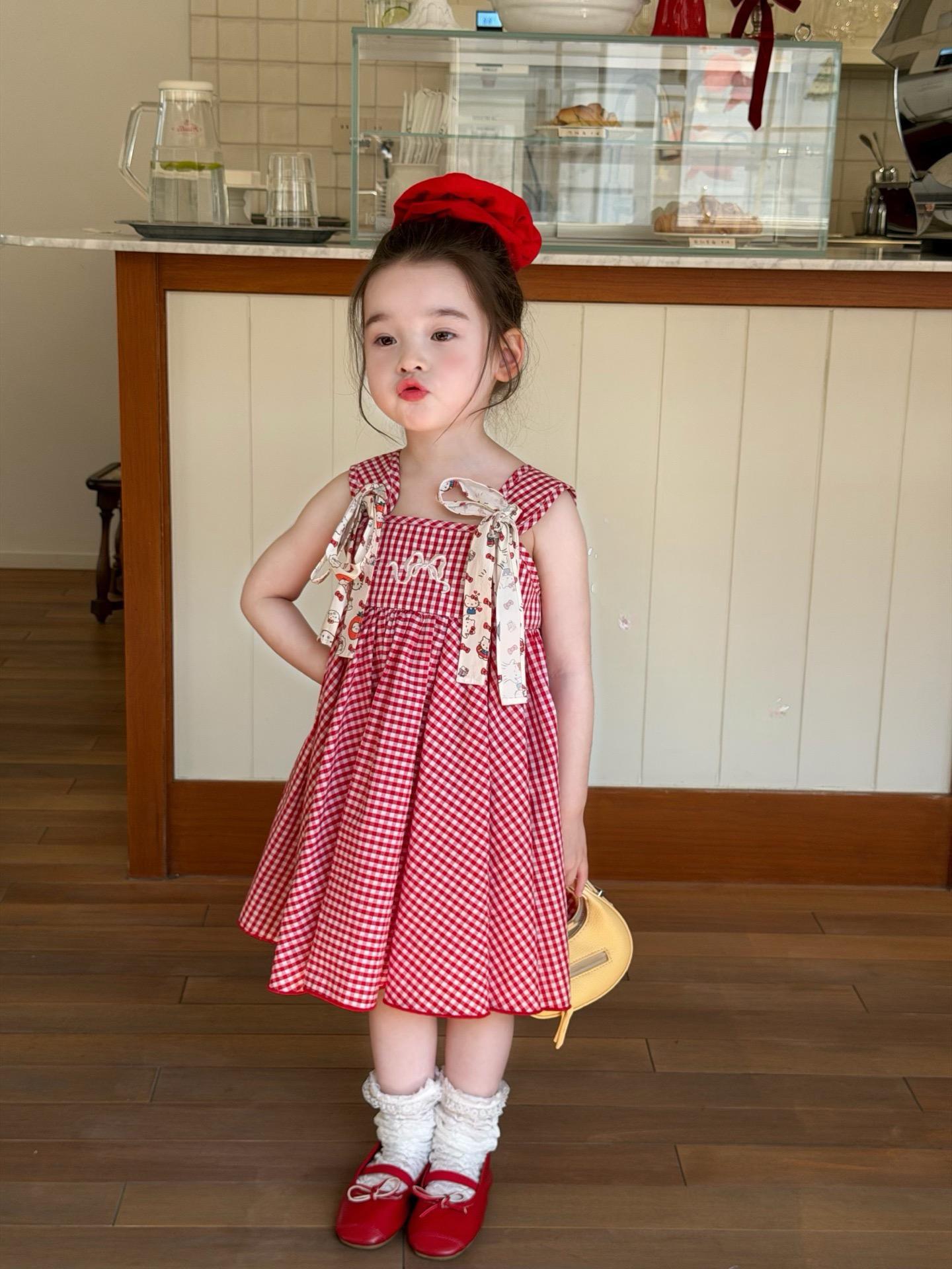 【90-140cm】ワンピース 女の子 おしゃれ チェック柄 リボン付き¥3,280 JPY¥5,465 JPY