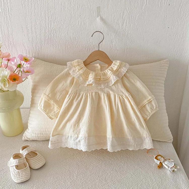 【66-90cm】ワンピース フリル襟 リネン シンプル 可愛い 女の子¥2,280 JPY¥3,460 JPY
