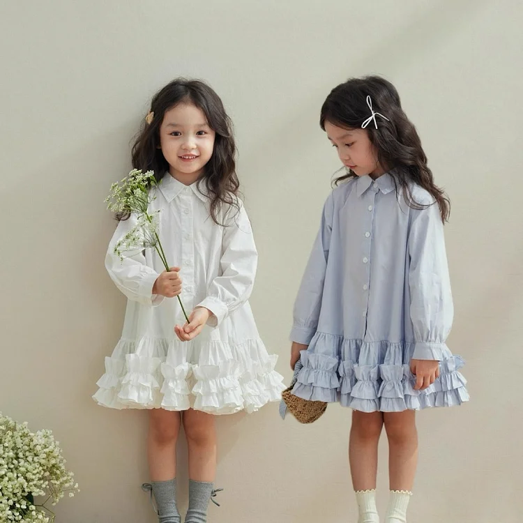 【90-140cm】女の子 無地 フォマールシャツ ワンピース¥2,680 JPY¥5,290 JPY