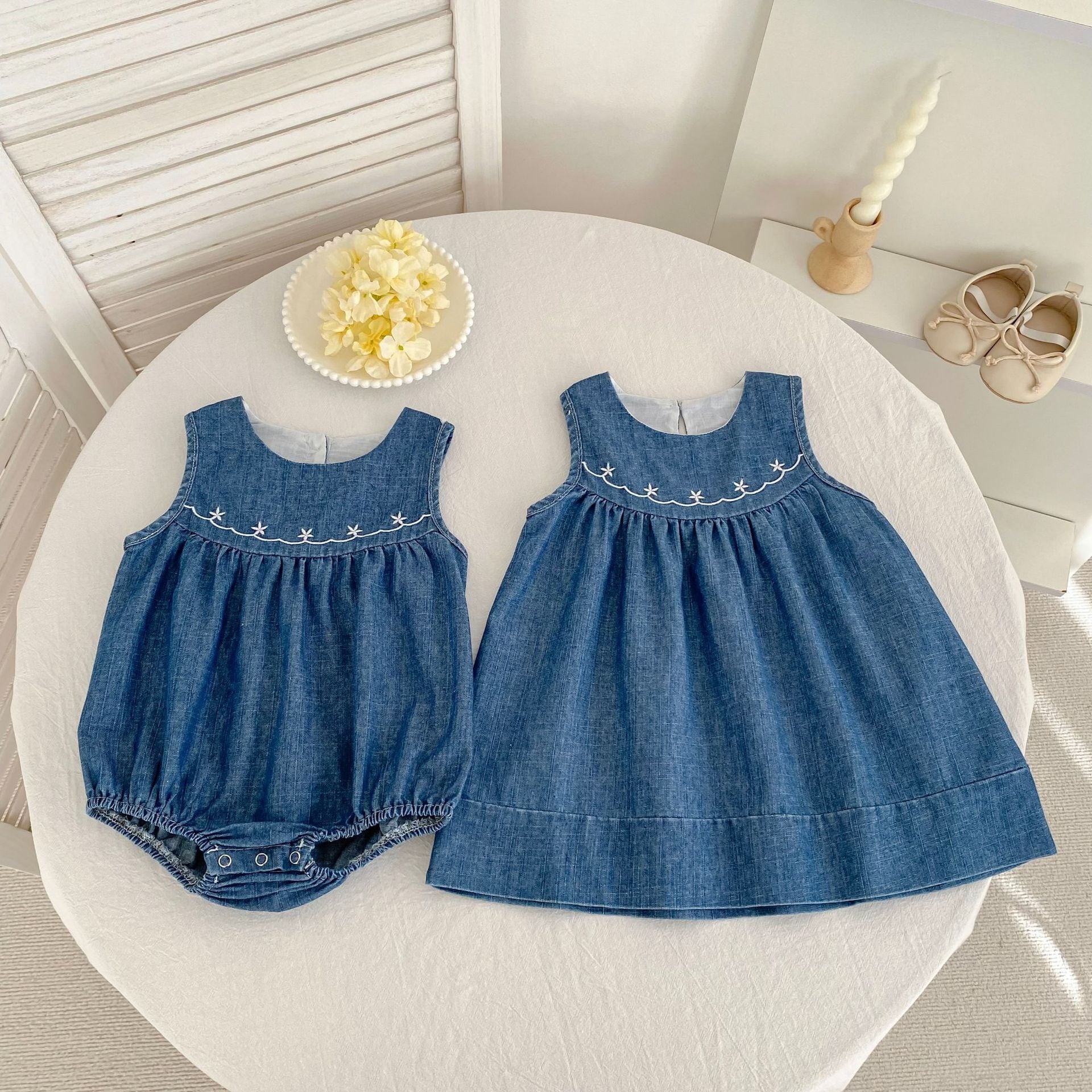 【66-130cm】ロンパース/ワンピース デニム ノースリーブ 姉妹服¥2,280 JPY¥4,515 JPY