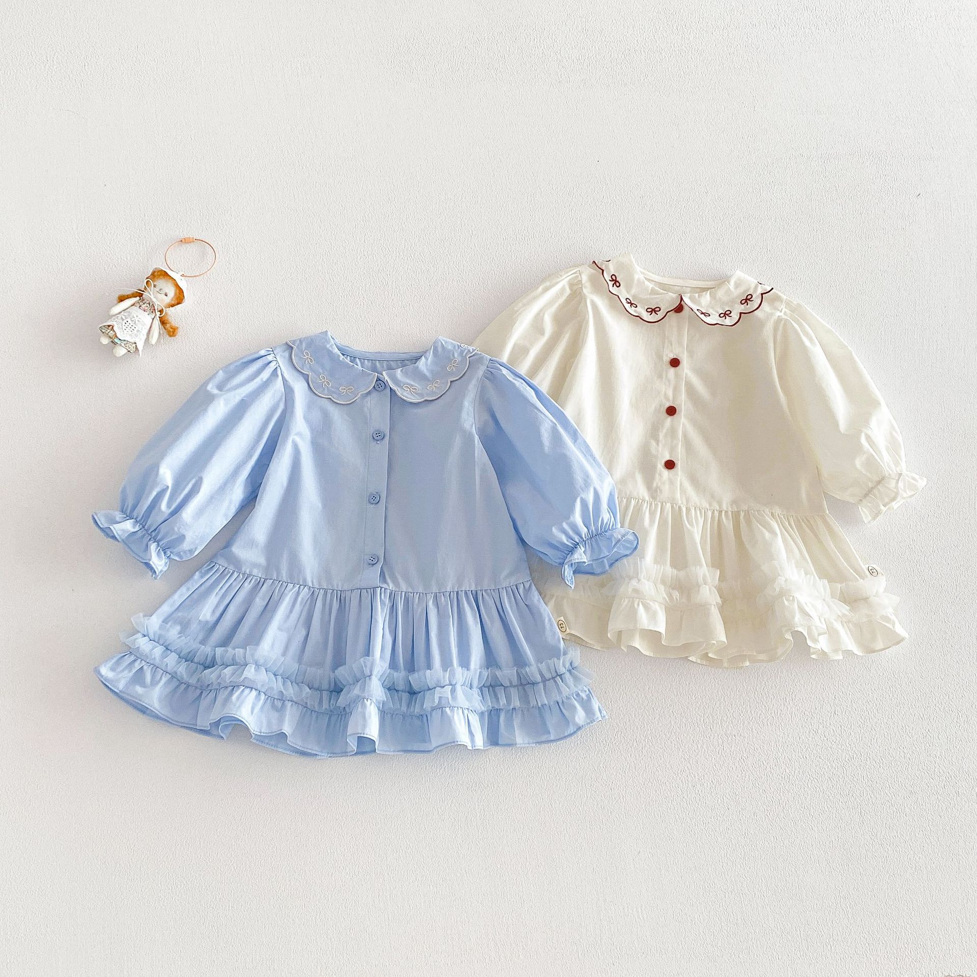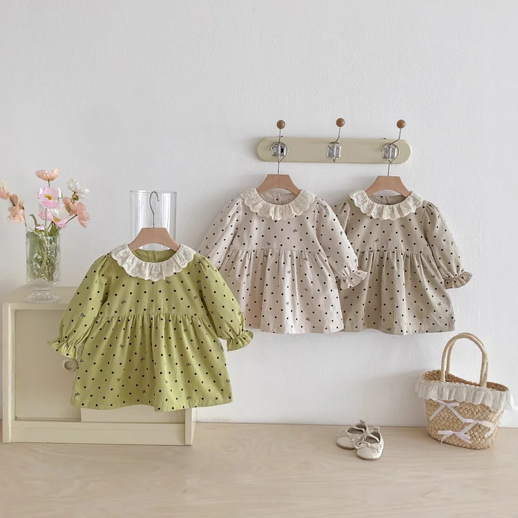 【73-110cm】ワンピースレース襟 ドットリボン おしゃれ¥2,296 JPY¥3,560 JPY