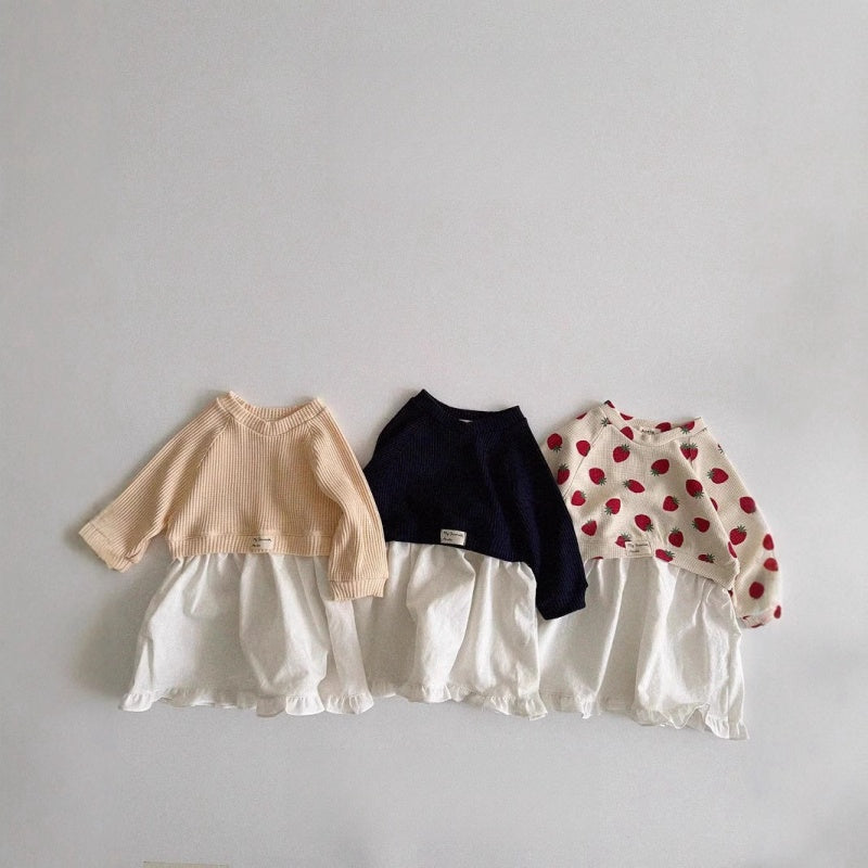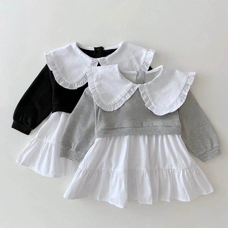 【80-120cm】折り襟 バイカラー 重ね着風 長袖 ワンピース¥2,772 JPY¥4,620 JPY