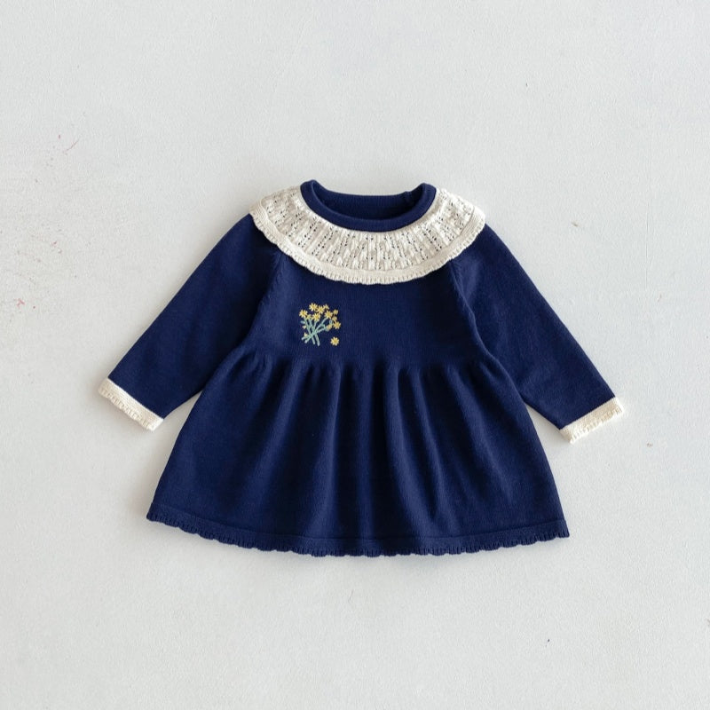 【73-110cm】小花 刺繍 ニット ワンピース¥3,150 JPY¥5,250 JPY