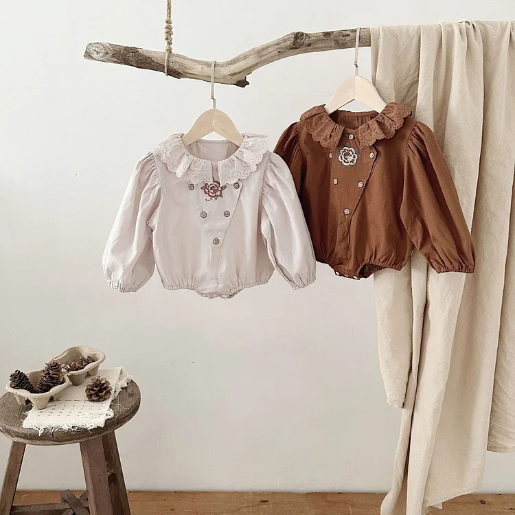 【66-90cm】ロンパース 韓国風 フリル襟 花刺繡 おしゃれ ベビー服¥2,400 JPY¥4,000 JPY