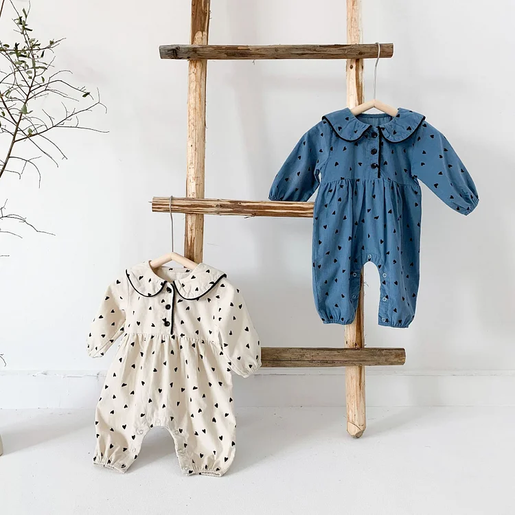 【66-100cm】オールインワン 丸襟 ハート柄 おしゃれ ロンパース¥2,660 JPY¥3,780 JPY