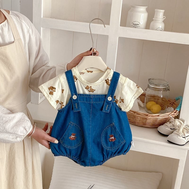 【66-90cm】二点セット サロペット&シャツ デニム クマ柄 セットアップ¥4,500 JPY¥7,258 JPY