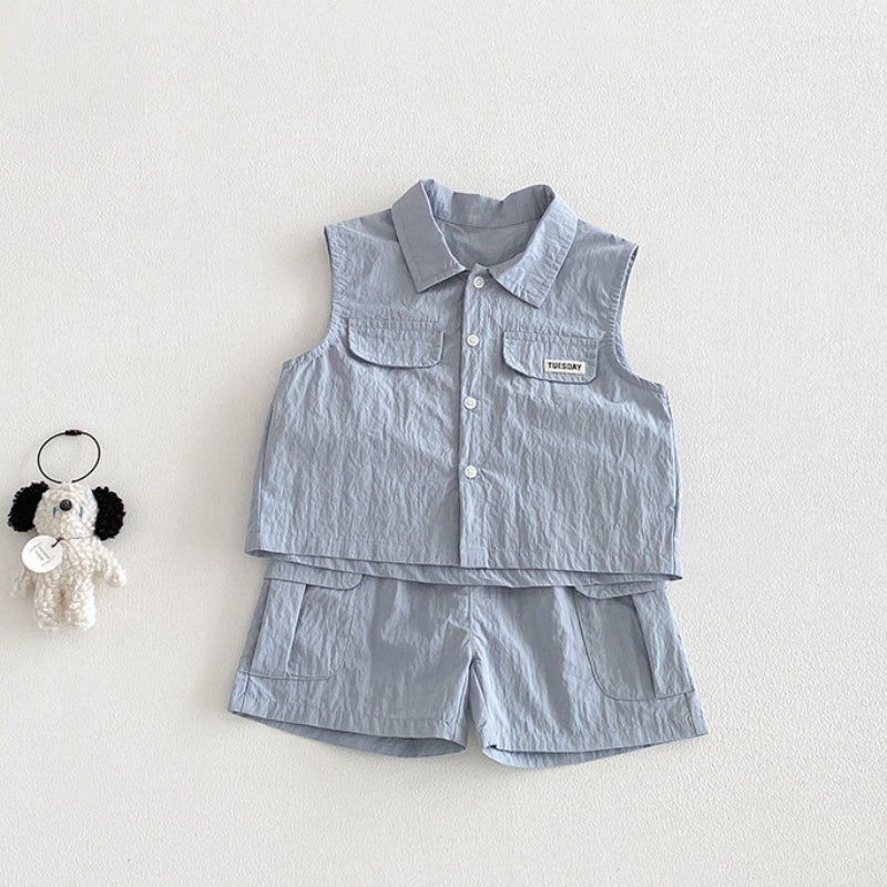 【73-100cm】セットアップ トップス&ショートパンツ 無地 ノースリーブ¥2,310 JPY¥4,200 JPY