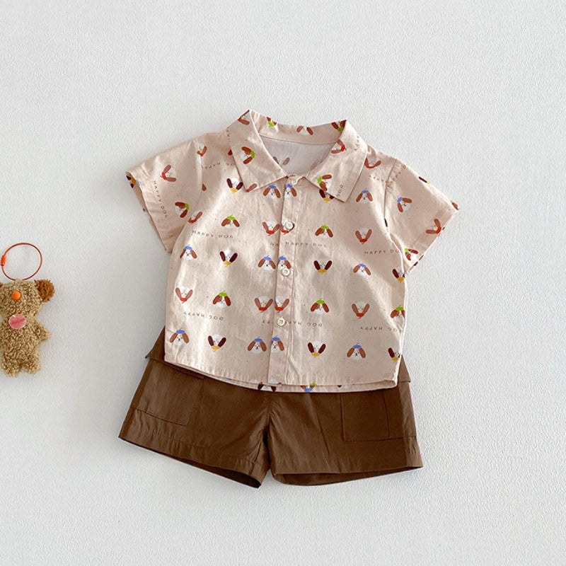 【73-100cm】セットアップ シャツ&ショートパンツ ベビー わんちゃん総柄¥3,860 JPY¥5,775 JPY