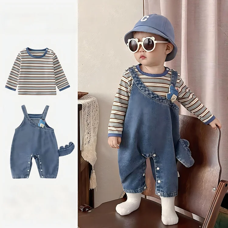 【73-100cm】セットアップ サロペット 恐竜柄 カジュアル シャツ 二点セット¥2,980 JPY¥3,689 JPY