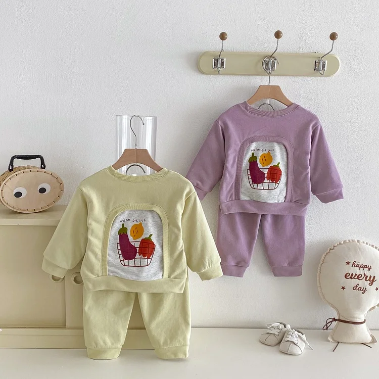 【73-120cm】シンプル 裏起毛 トレーナー+パンツ セットアップ¥2,980 JPY¥5,368 JPY
