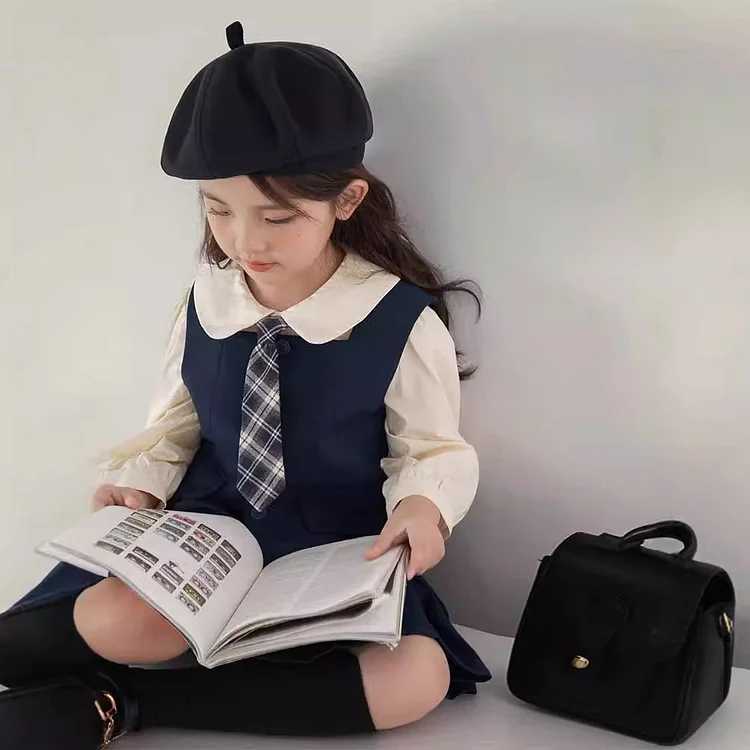 【90-140cm】 フォーマル ブラウス×ニットベスト×プリーツスカート 3点セット¥3,880 JPY¥5,450 JPY