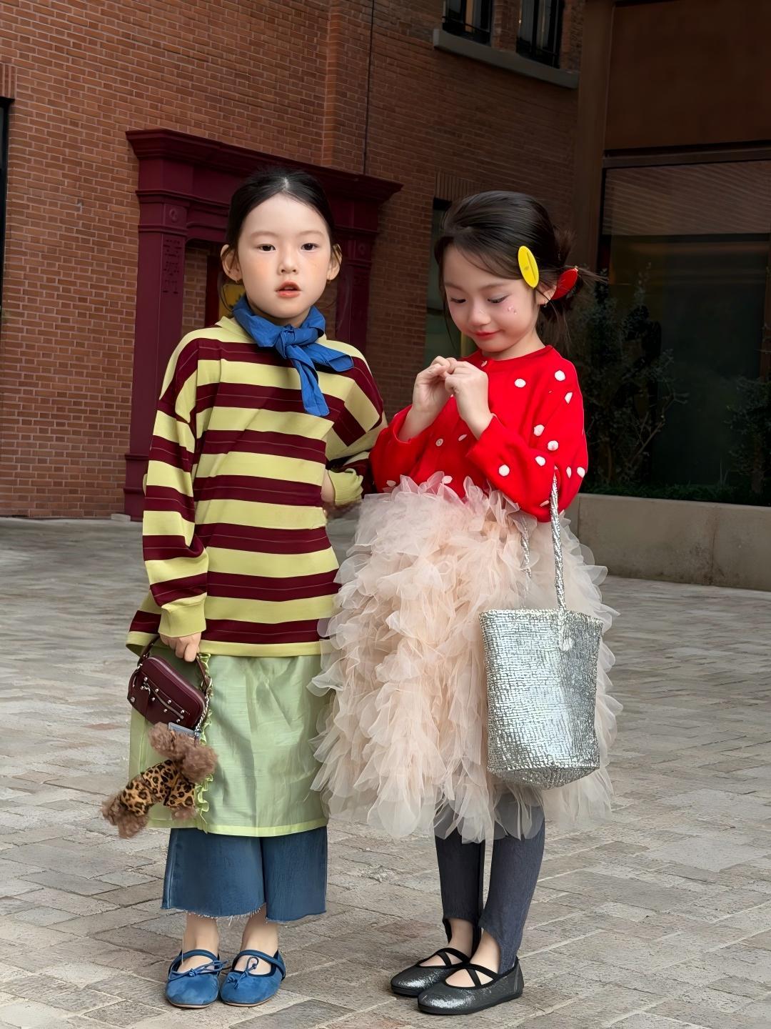 【90-140cm】長袖Tシャツ or カーディガン or スカート 女の子 ボーダー柄 ドット柄¥2,550 JPY¥3,758 JPY