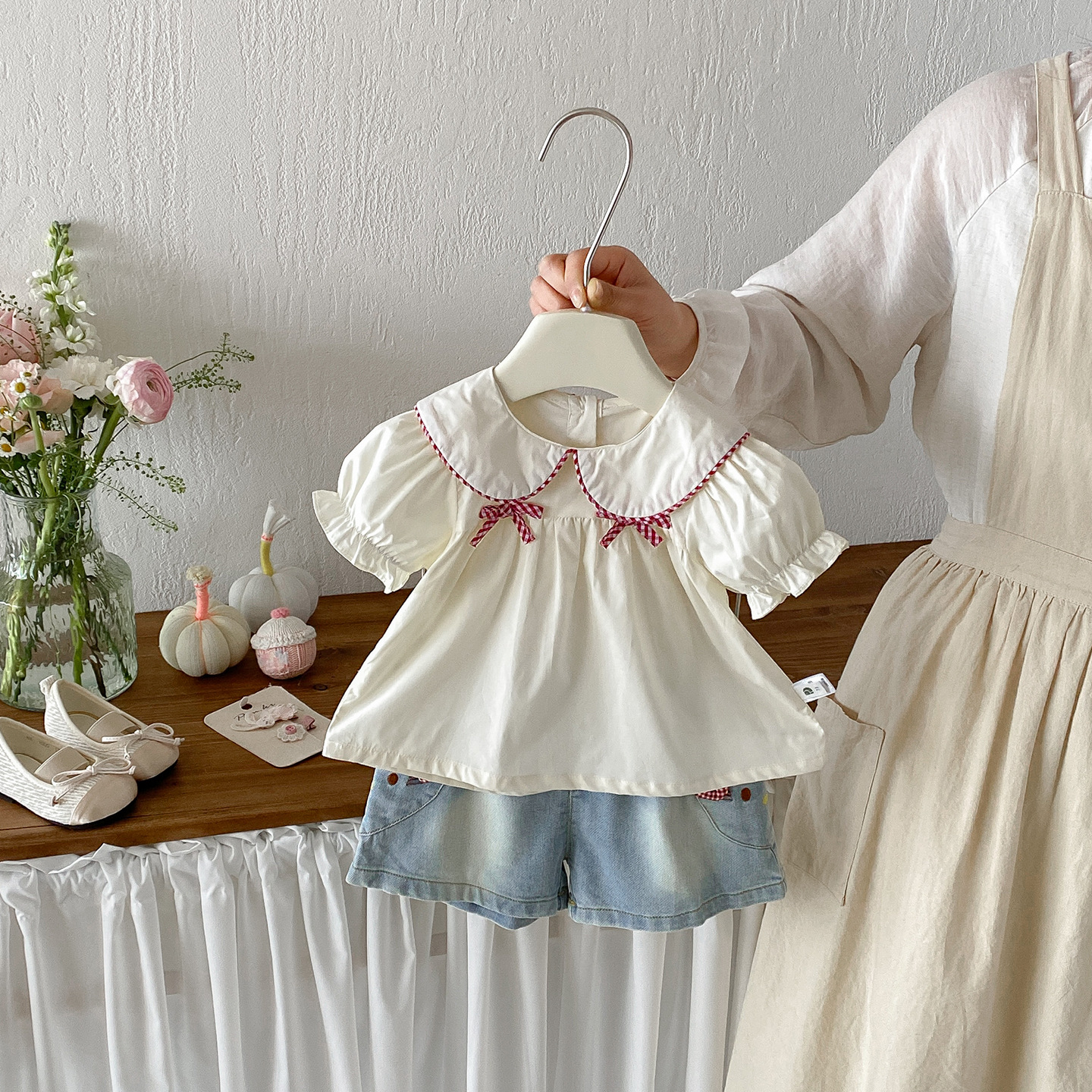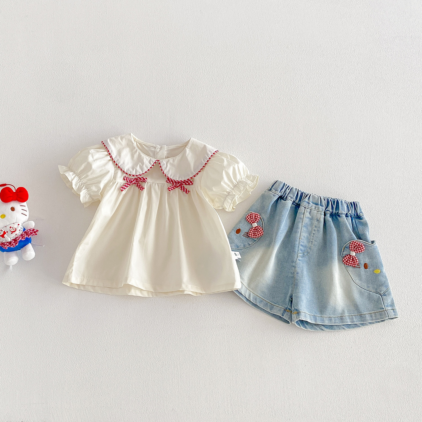 【73-100cm】ベビー 女の子 半袖シャツ/ショートパンツ リボン付き¥2,580 JPY¥4,586 JPY