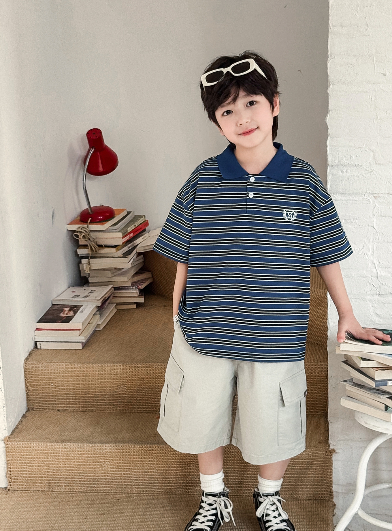 【90-150cm】ポロシャツ 男の子 ボーダー柄 ロゴ刺繍 カレッジ風 半袖 カジュアル トップス¥2,880 JPY¥4,856 JPY