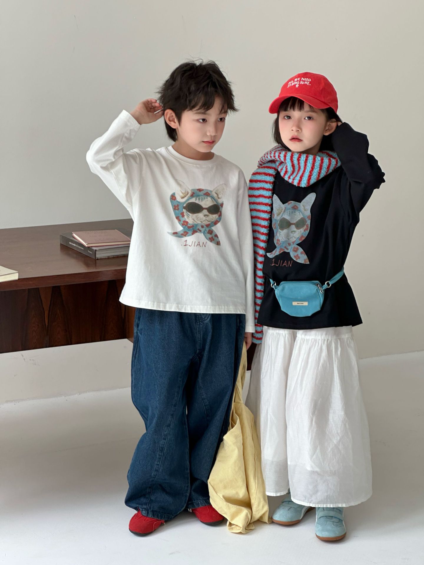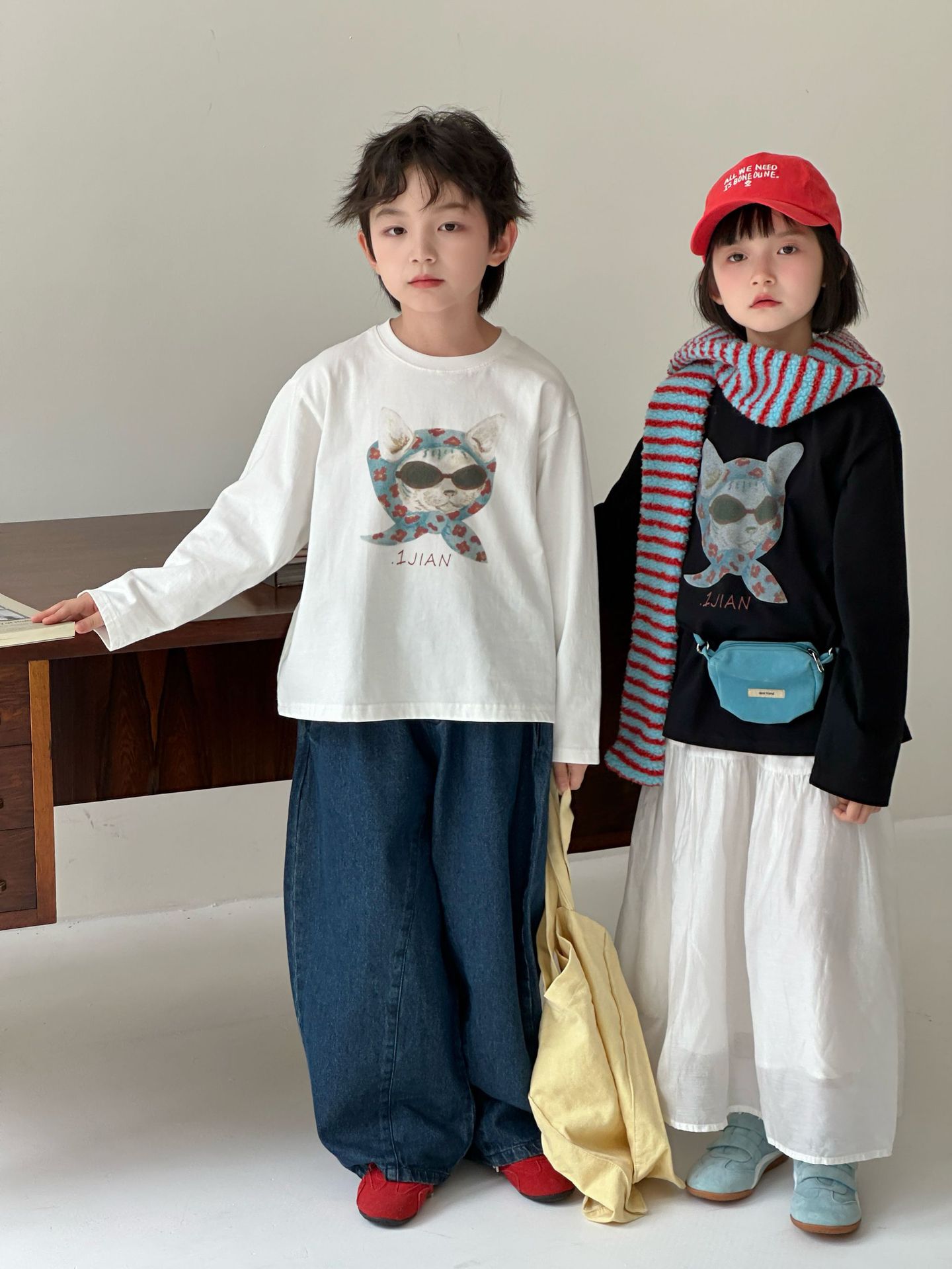 【90-150cm】Tシャツ カートゥーン プリント 猫柄 ラウンドネック 長袖 トップス¥1,699 JPY¥4,652 JPY