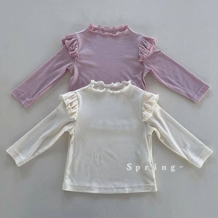 【73-110cm】シャツ 肩フリル シンプル 合わせやすい 長袖 トップス¥2,140 JPY¥3,400 JPY