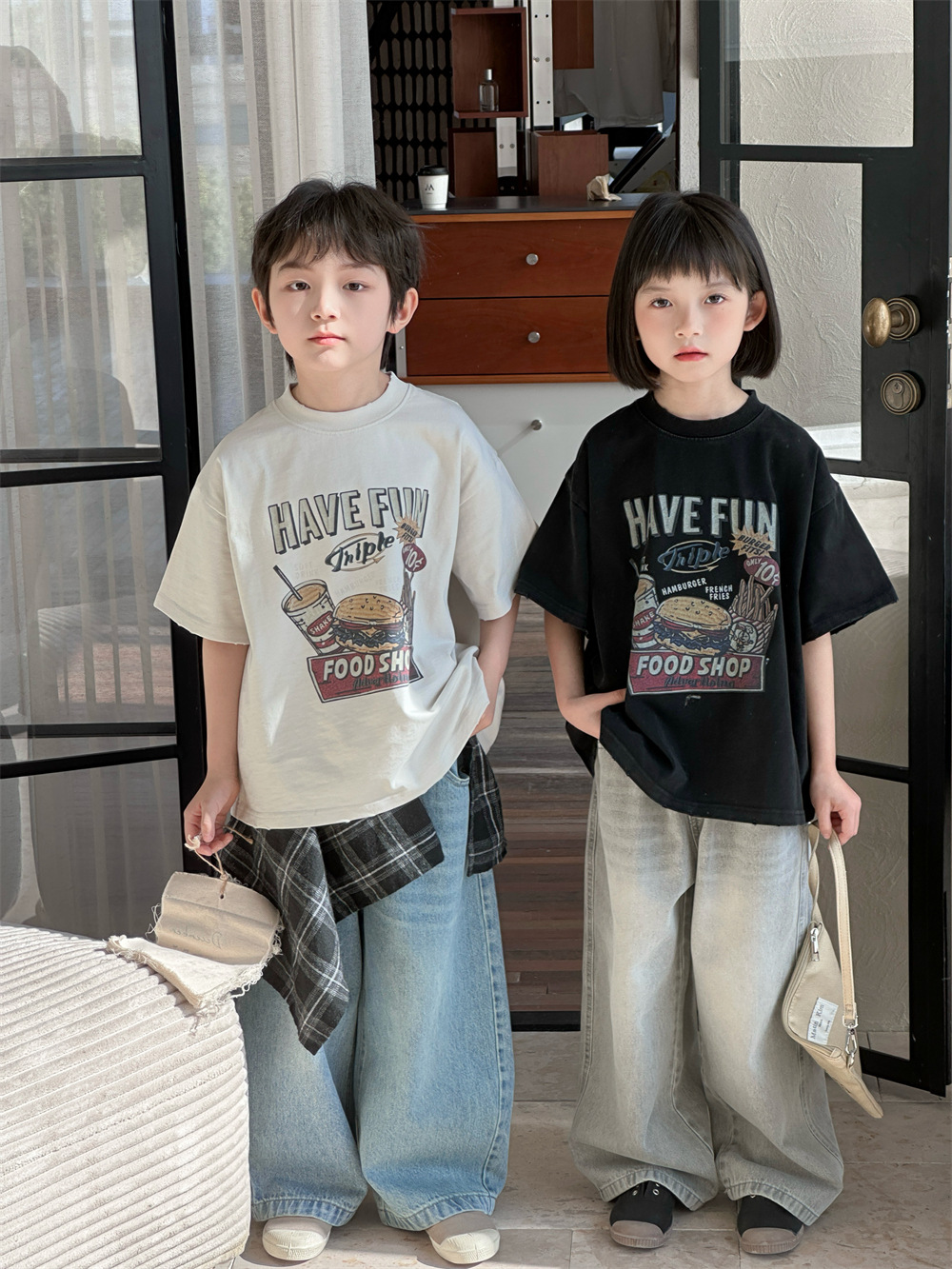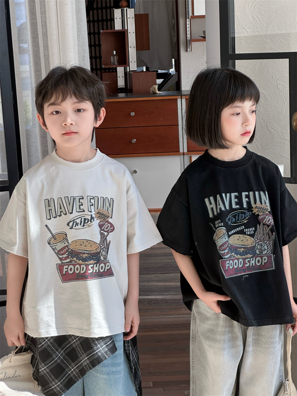 【90-150cm】Tシャツ アルファベット ルーズ 着心地良い 半袖 トップス¥1,299 JPY¥4,369 JPY