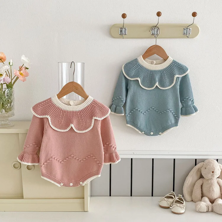 【66-100cm】 フリル襟 ニット ロンパース¥2,540 JPY¥4,158 JPY