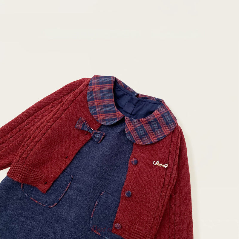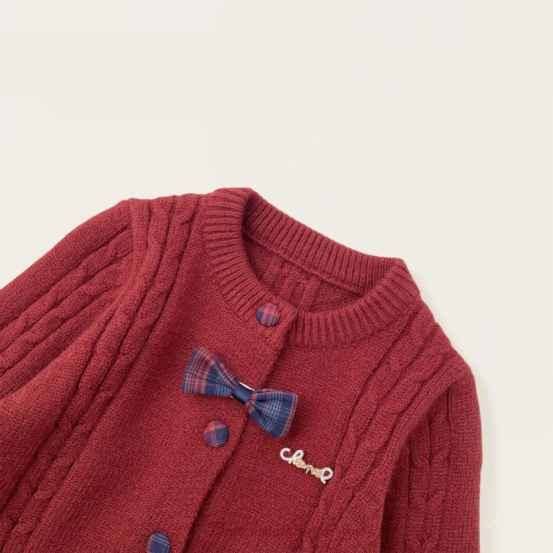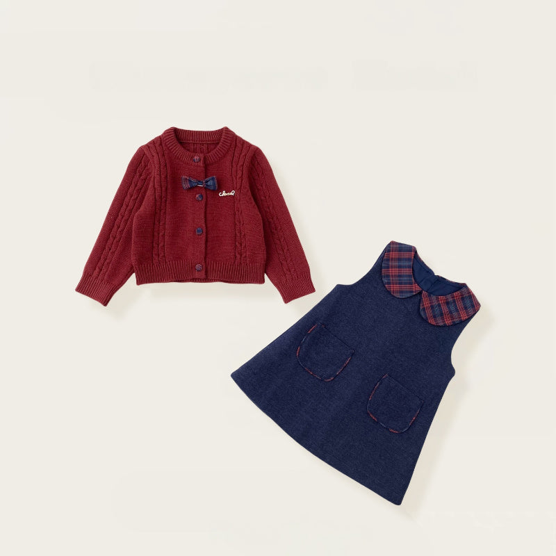 【80-140cm】リボンニットカーディガン&ジャンパースカート