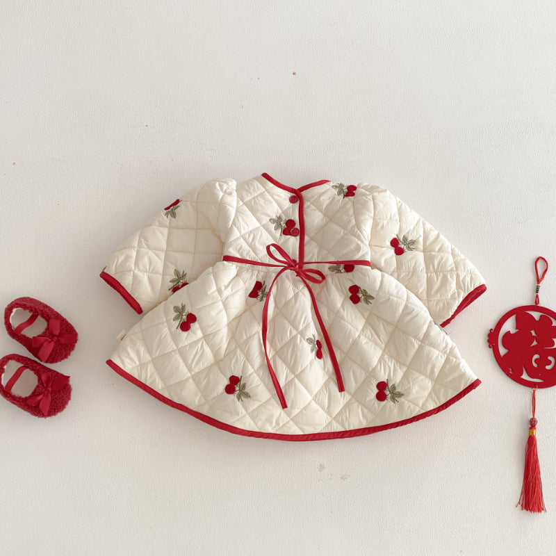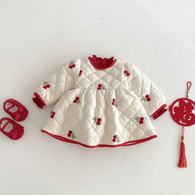 【73-120cm】 さくらんぼ 中綿 ワンピース