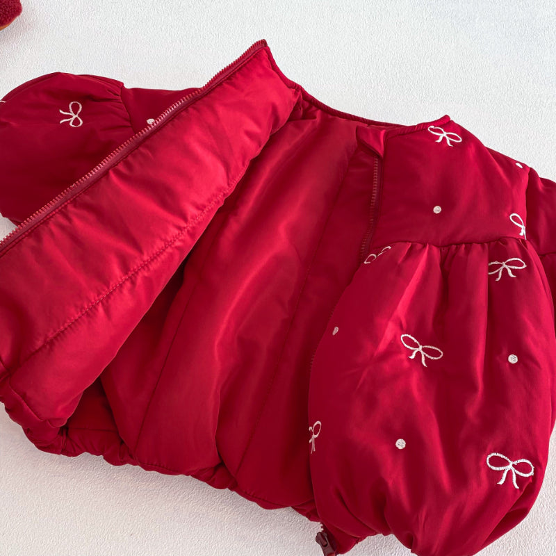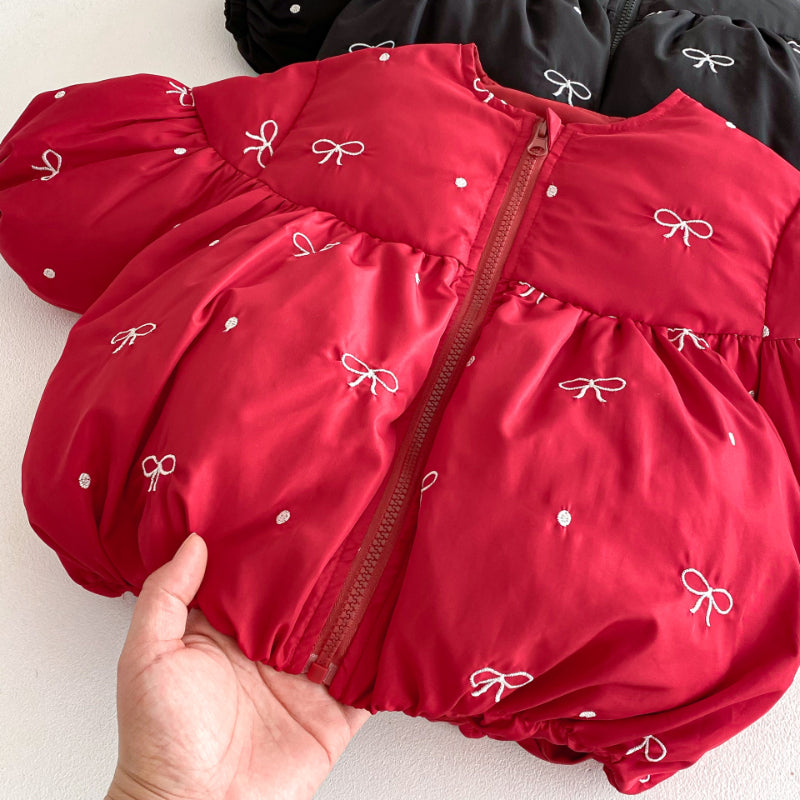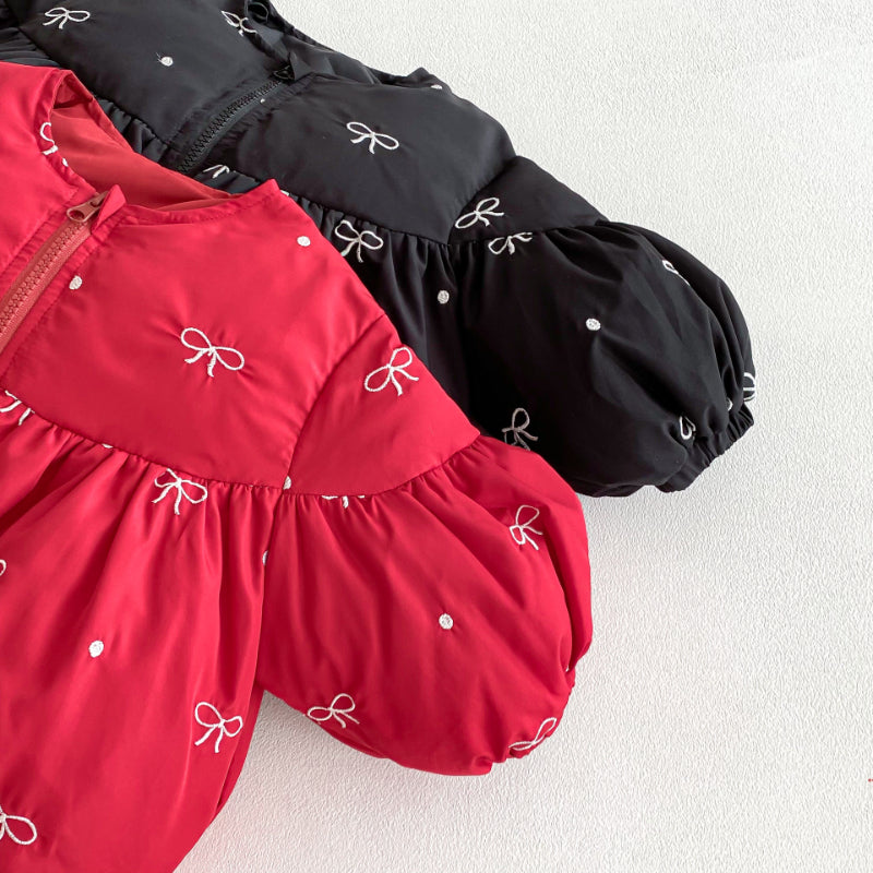 【73-120cm】 蝶結び 刺繍 中綿アウター