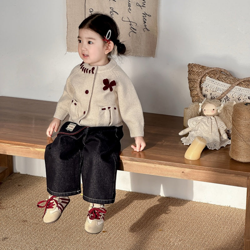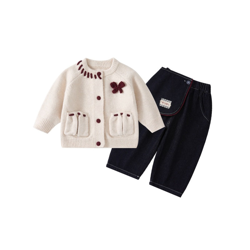 【73-100cm】ポケット付き ニット カーディガンorデニムパンツ