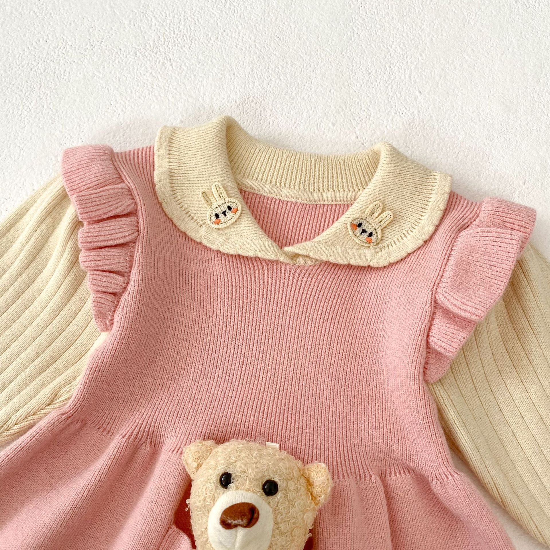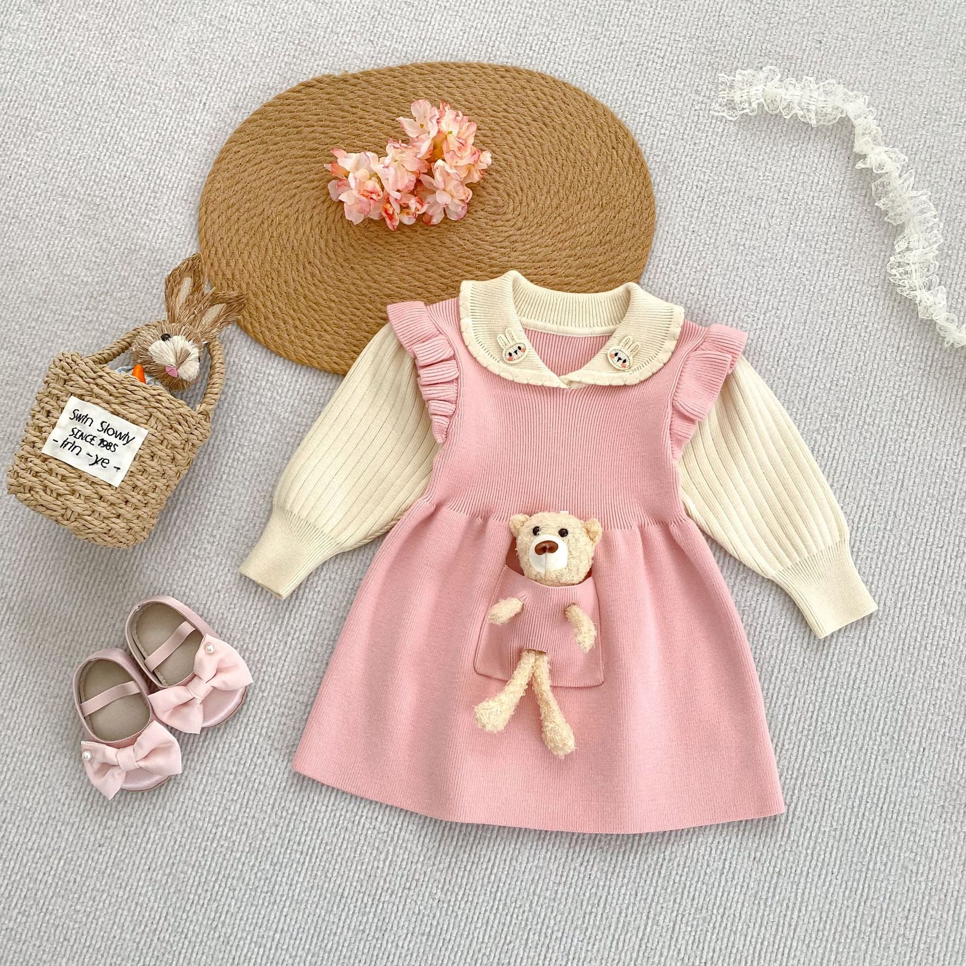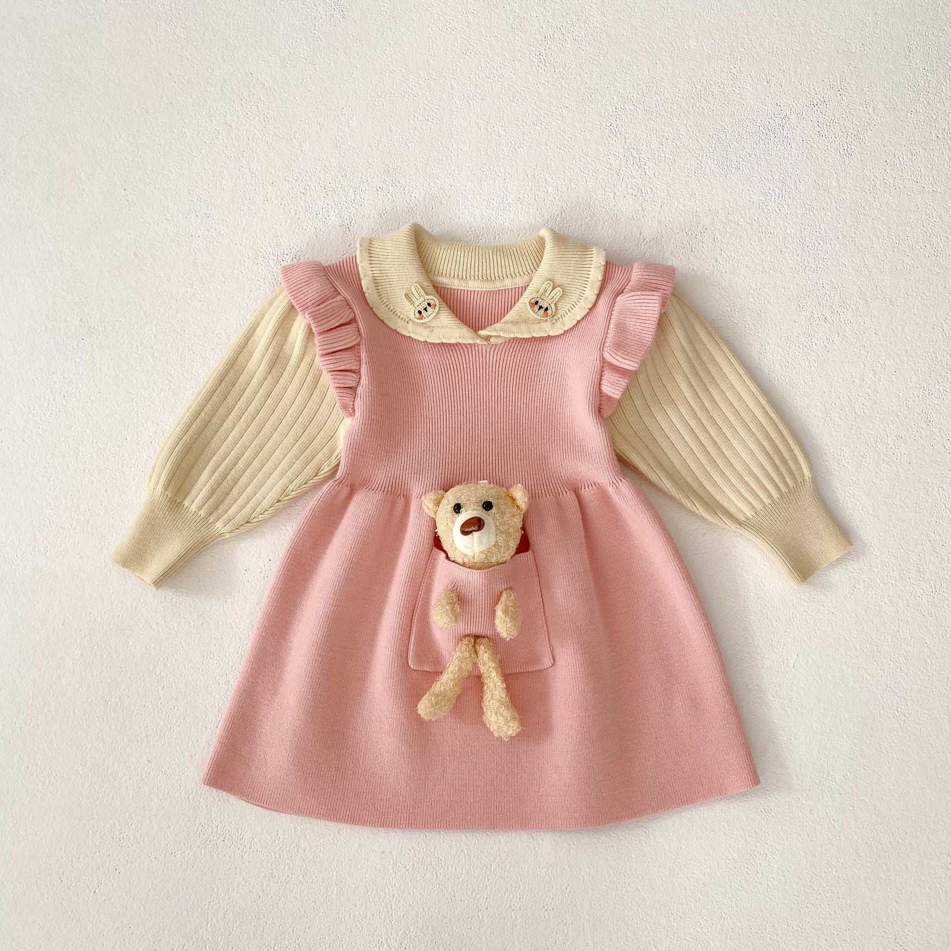 【73-110cm】熊さん付き レイヤード ワンピース