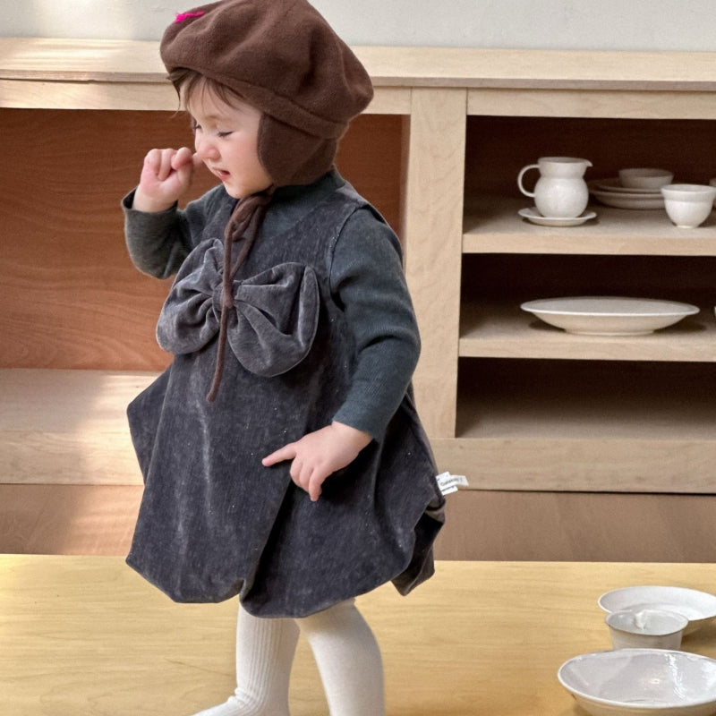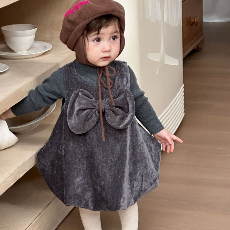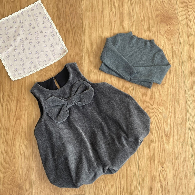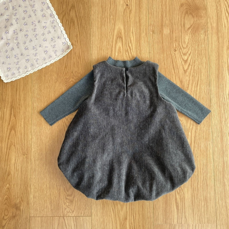 【73-100cm】 ヘップバーン風ドレスワンピ&ニットインナー 2点セット