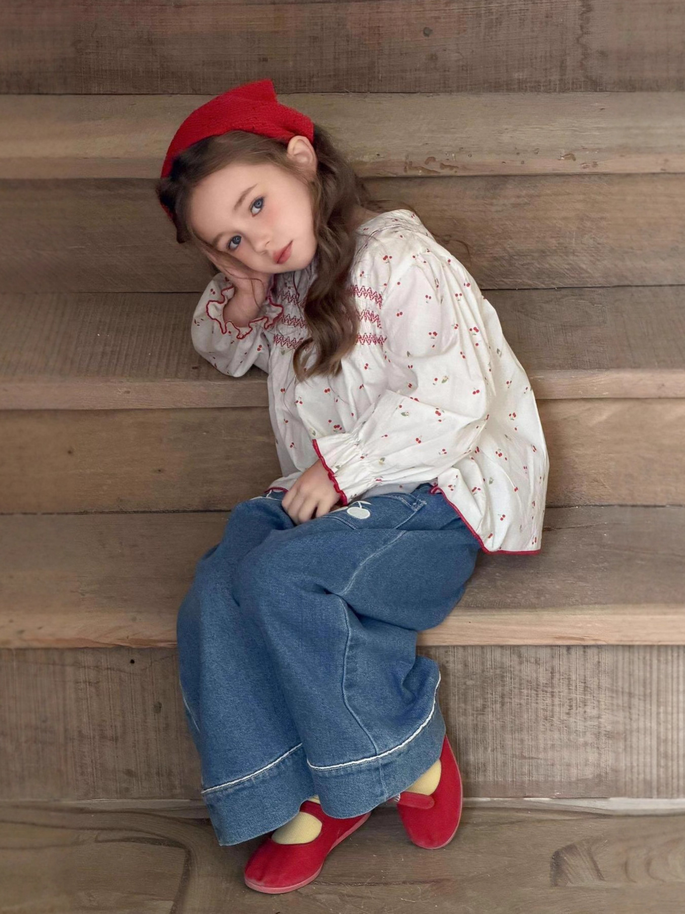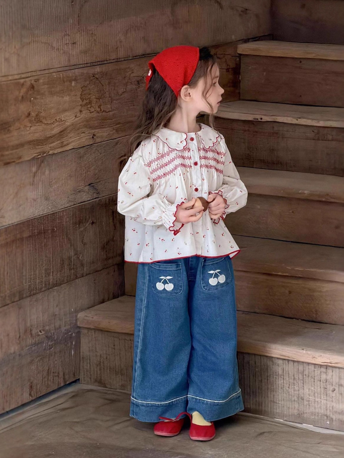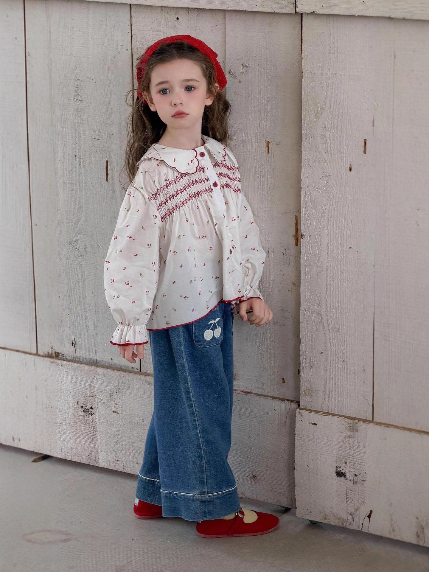 【90-140cm】シャツ or ワイドパンツ 女の子 チェリー柄 スウィート