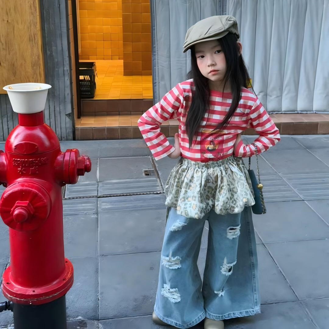 【90-140cm】長袖Tシャツ or デニムパンツ 女の子 ボーダー柄 おしゃれ