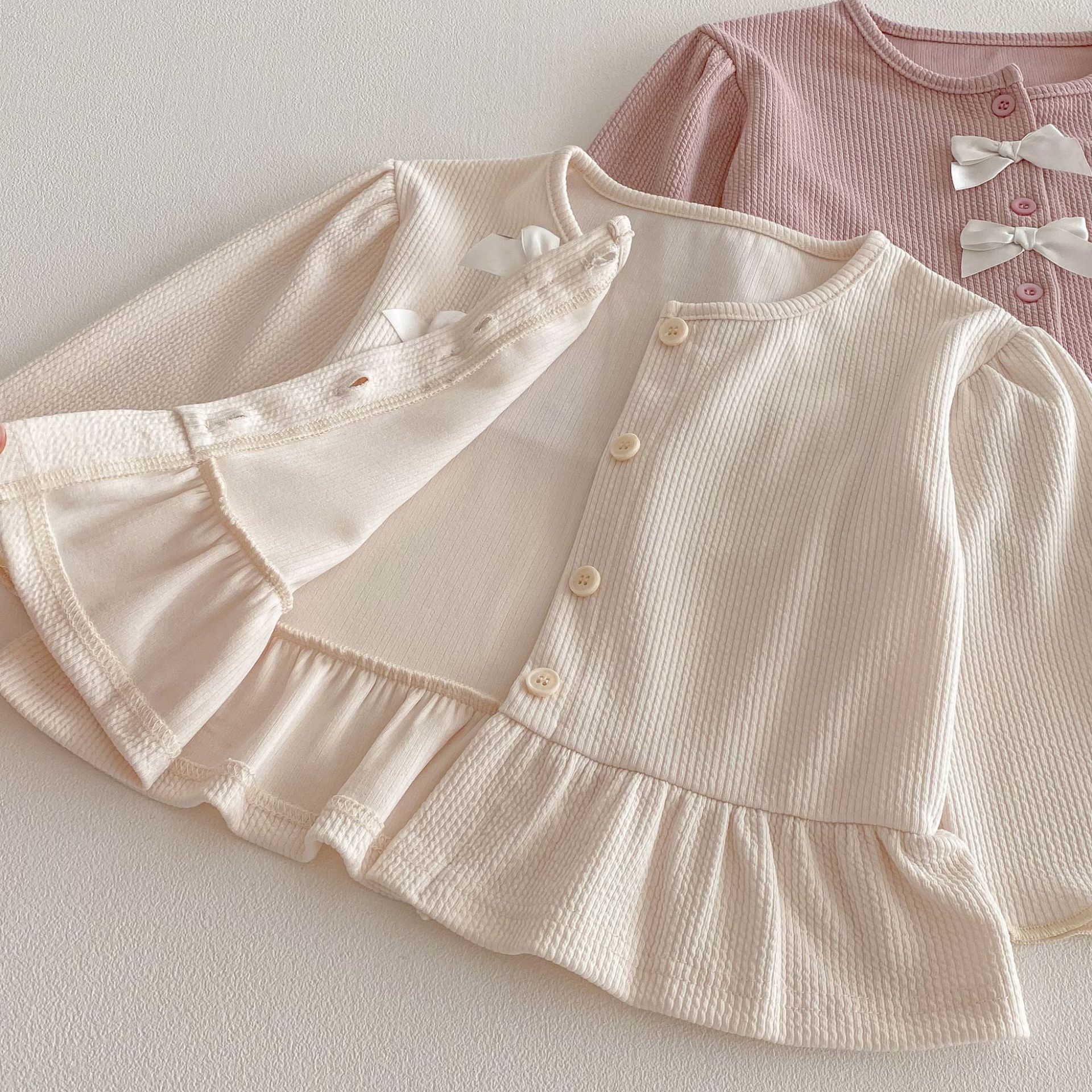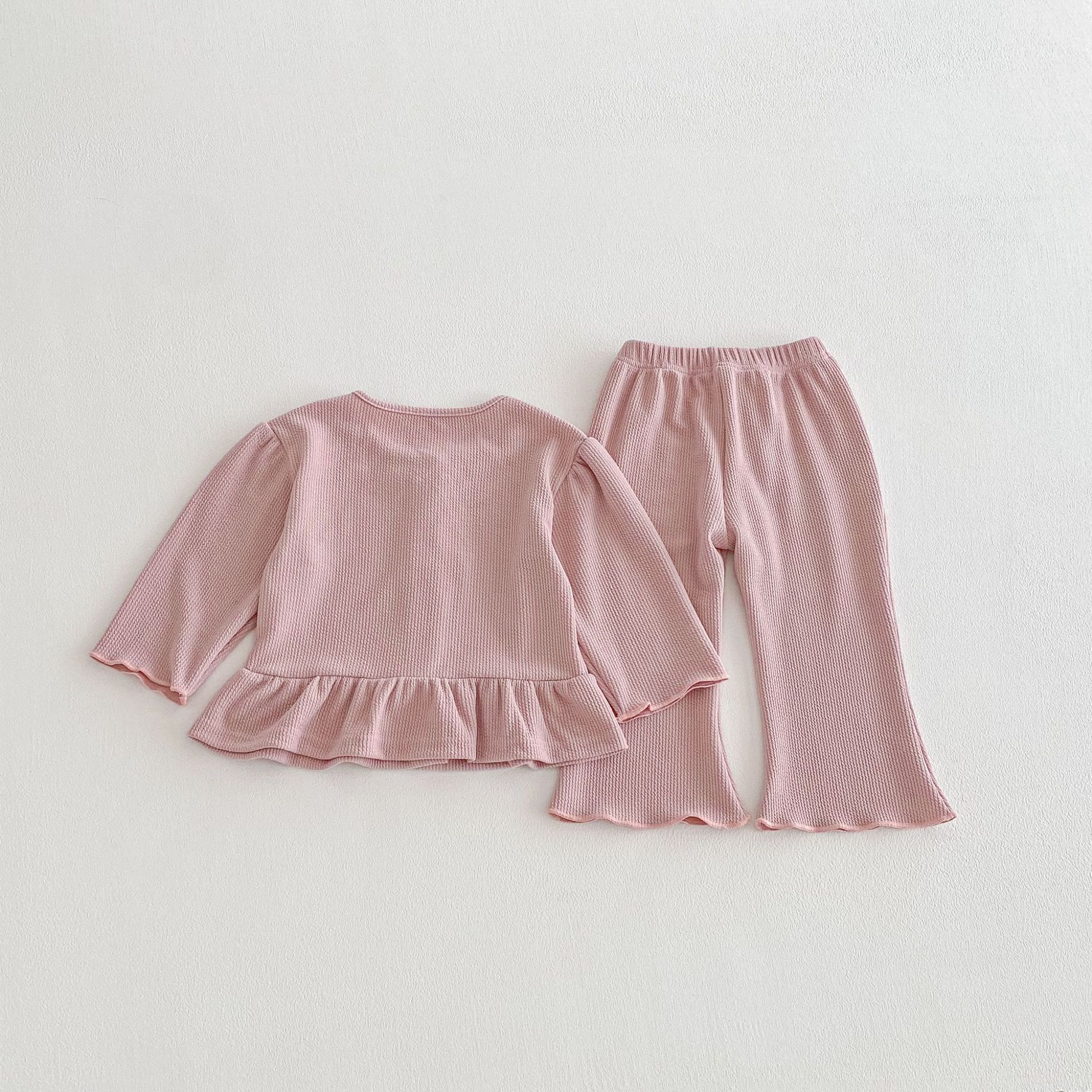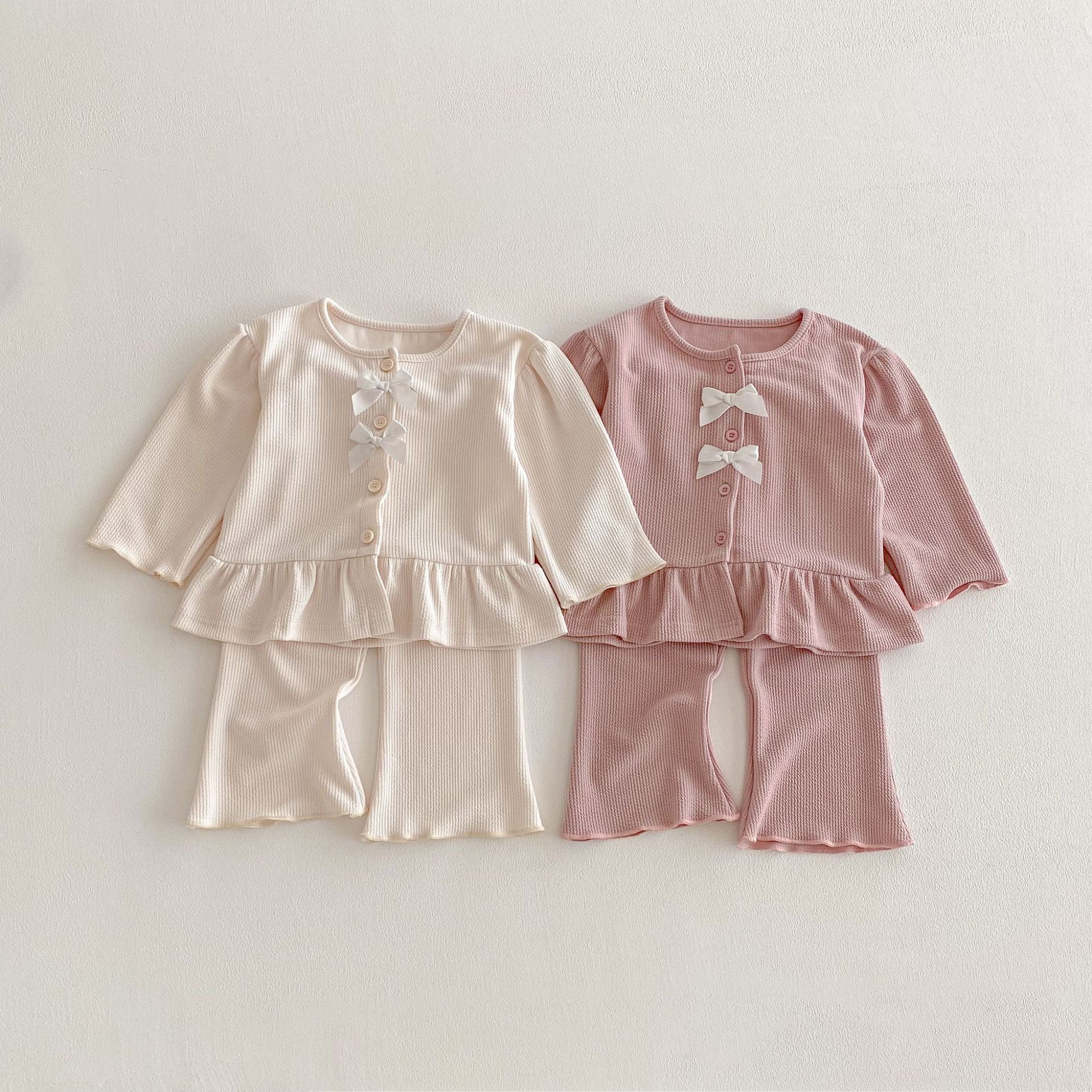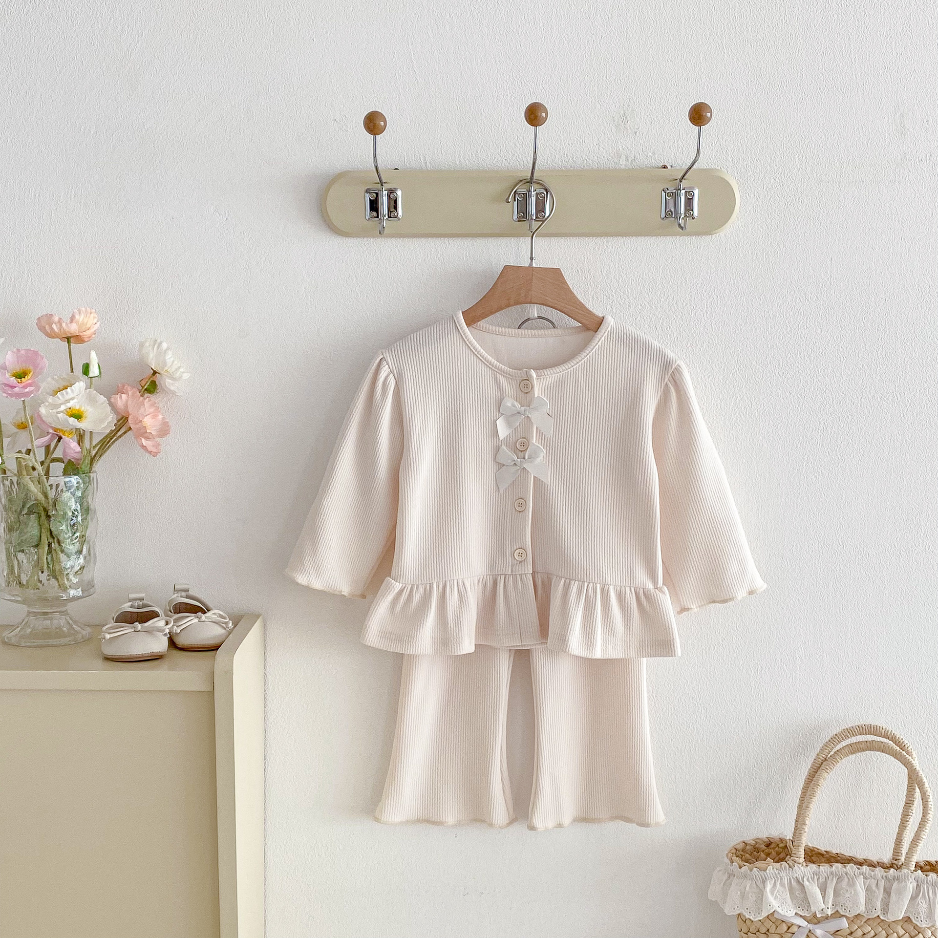 【80-130cm】女の子 セットアップ トップス+パンツ リボン付き