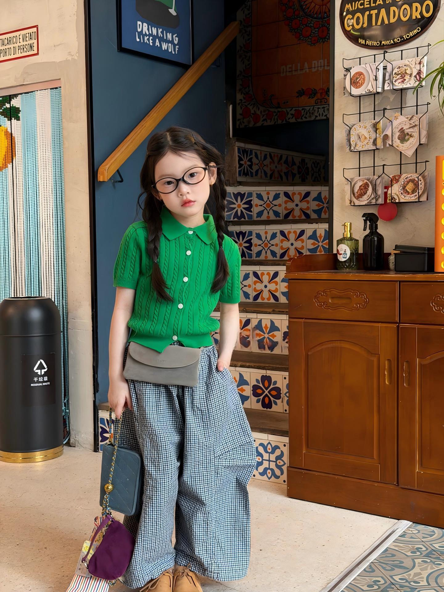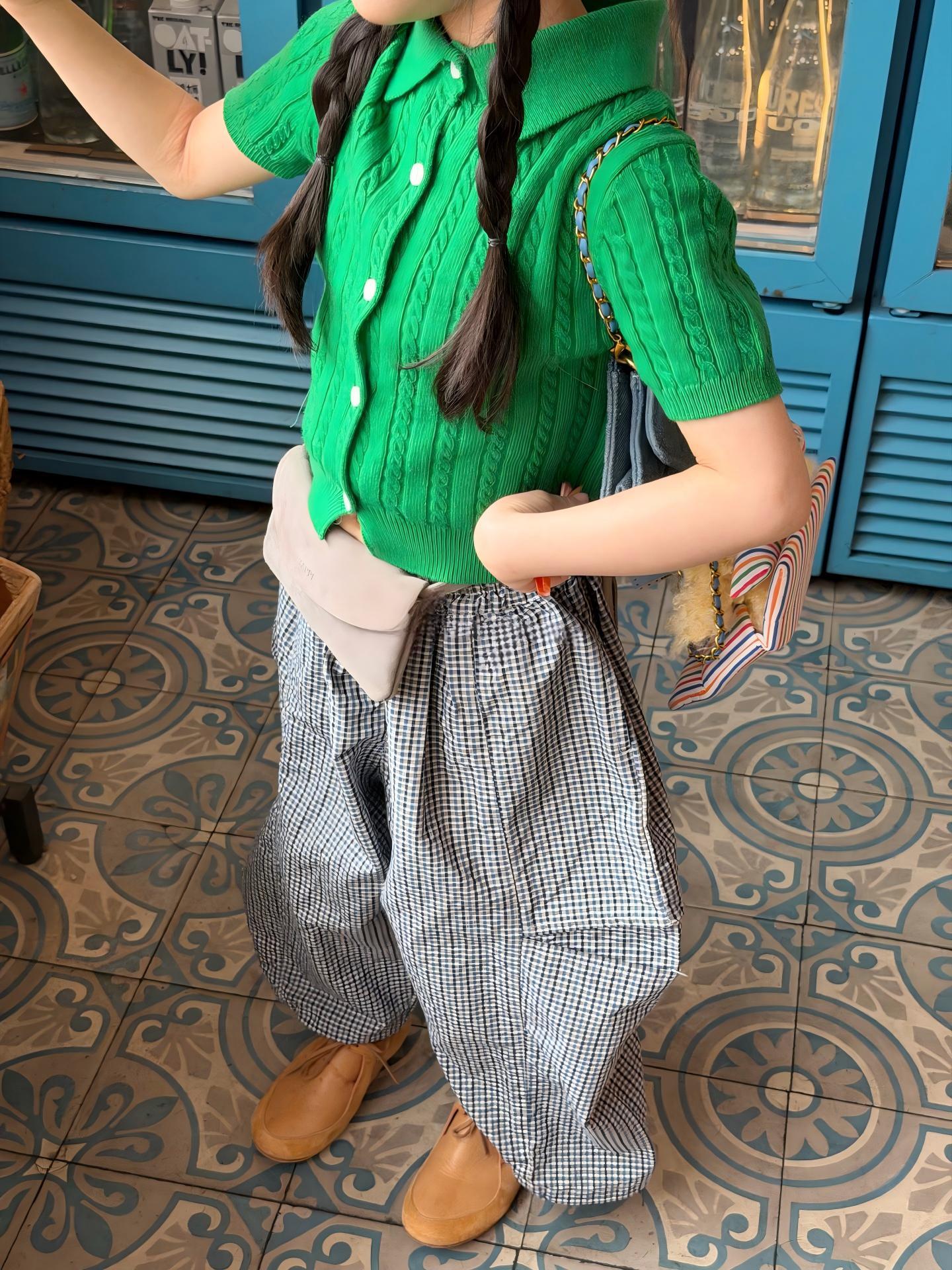【90-140cm】ニット半袖トップス or パンツ 女の子 韓国風 インスタ風