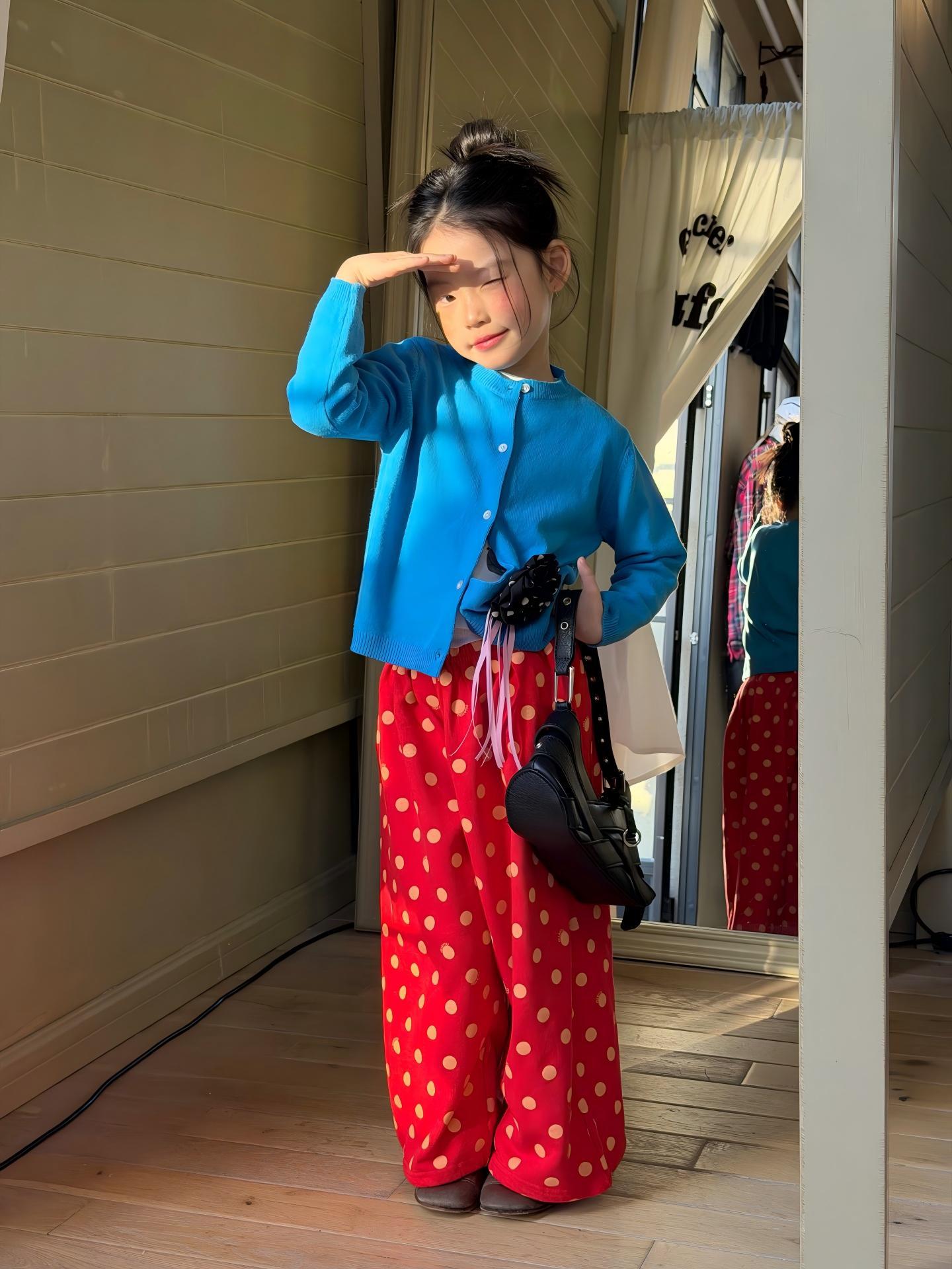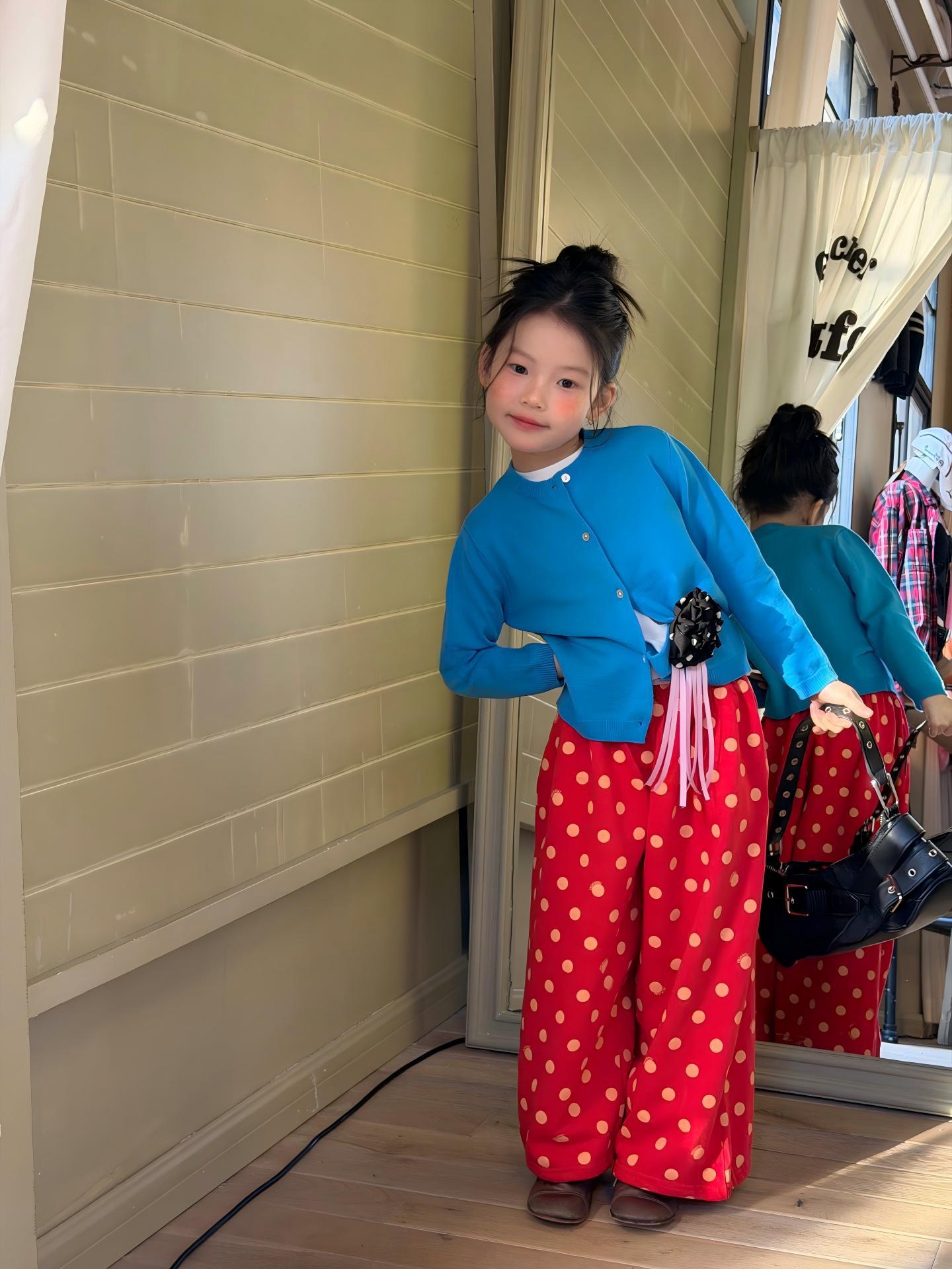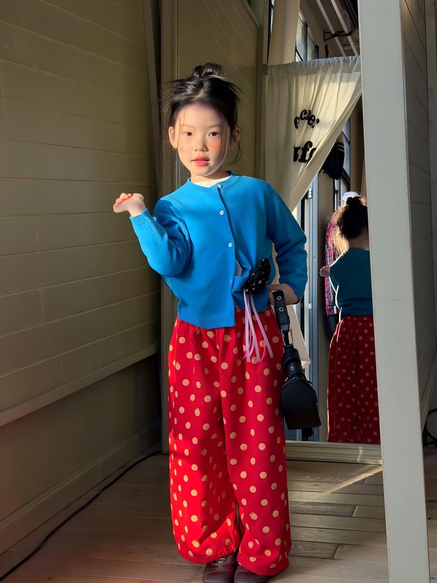 【90-140cm】女の子 ニットカーディガン/ドット柄 パンツ お出かけ 可愛い