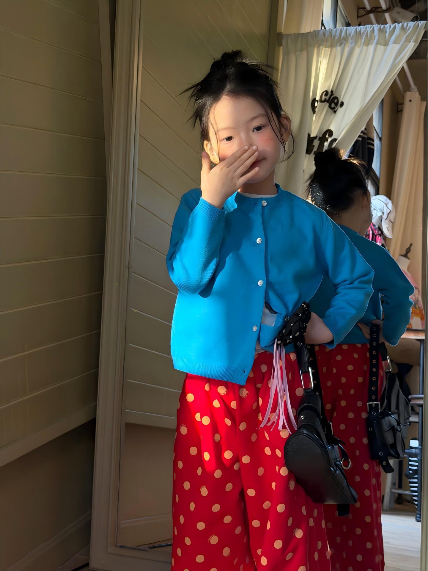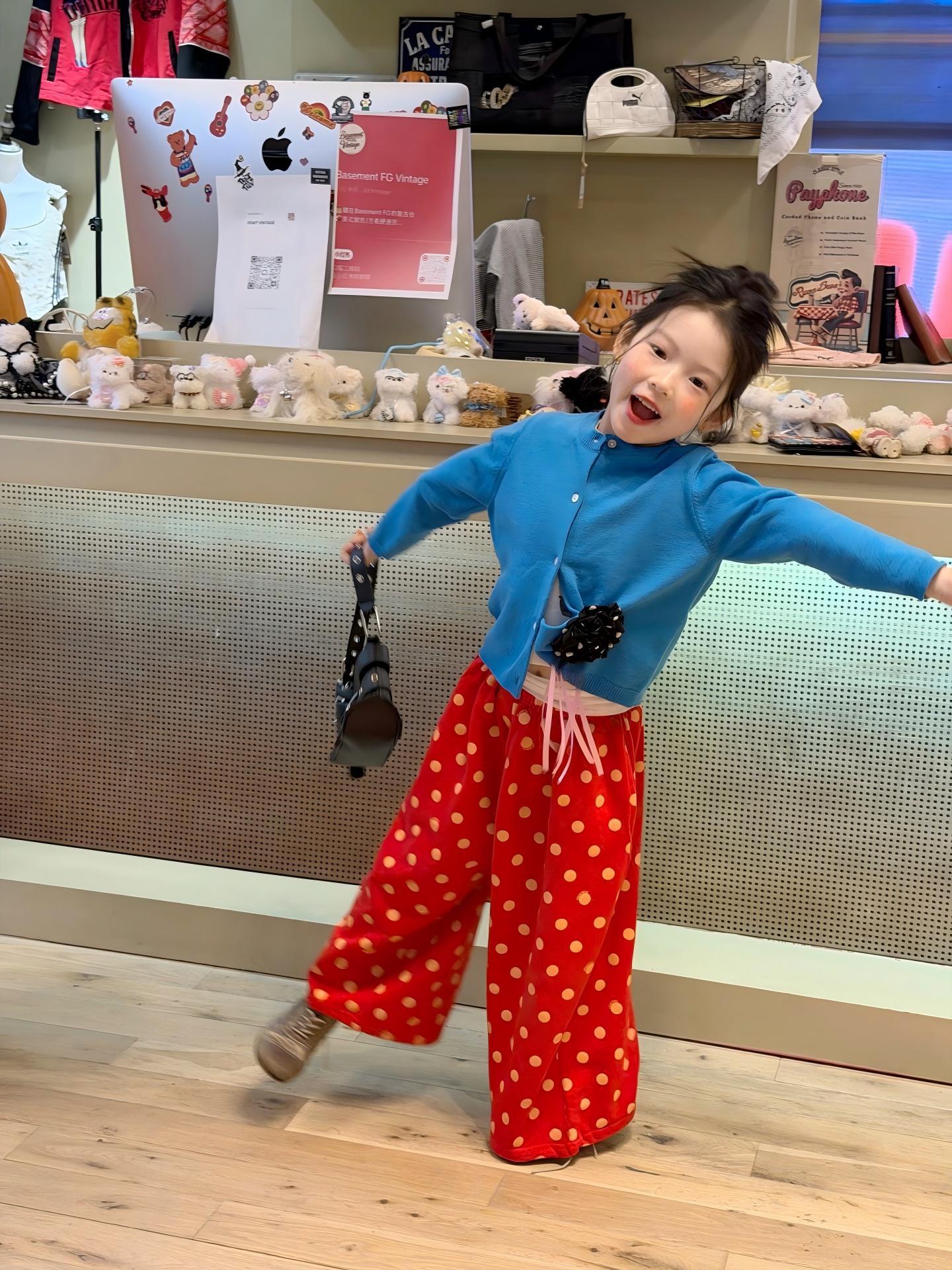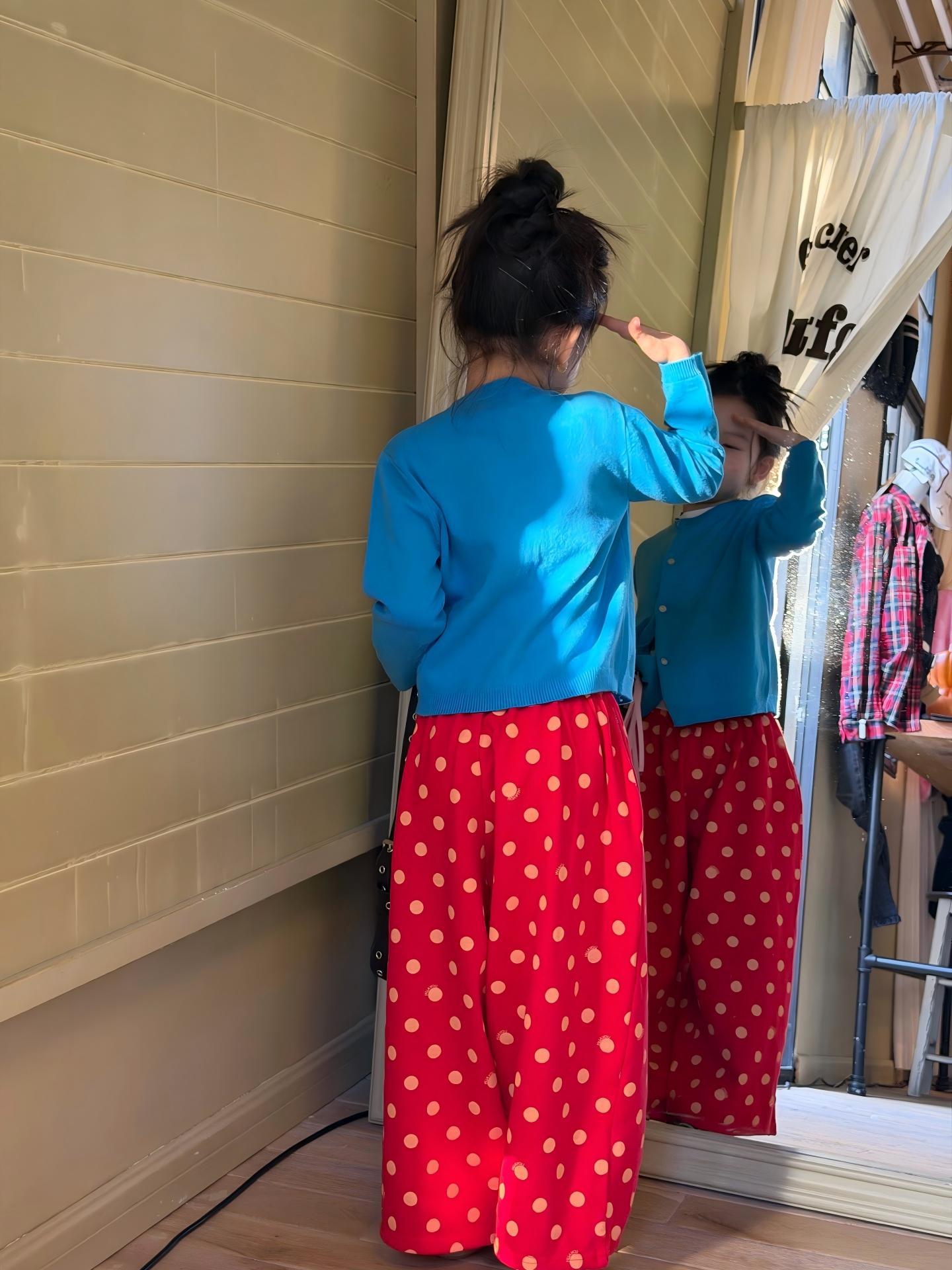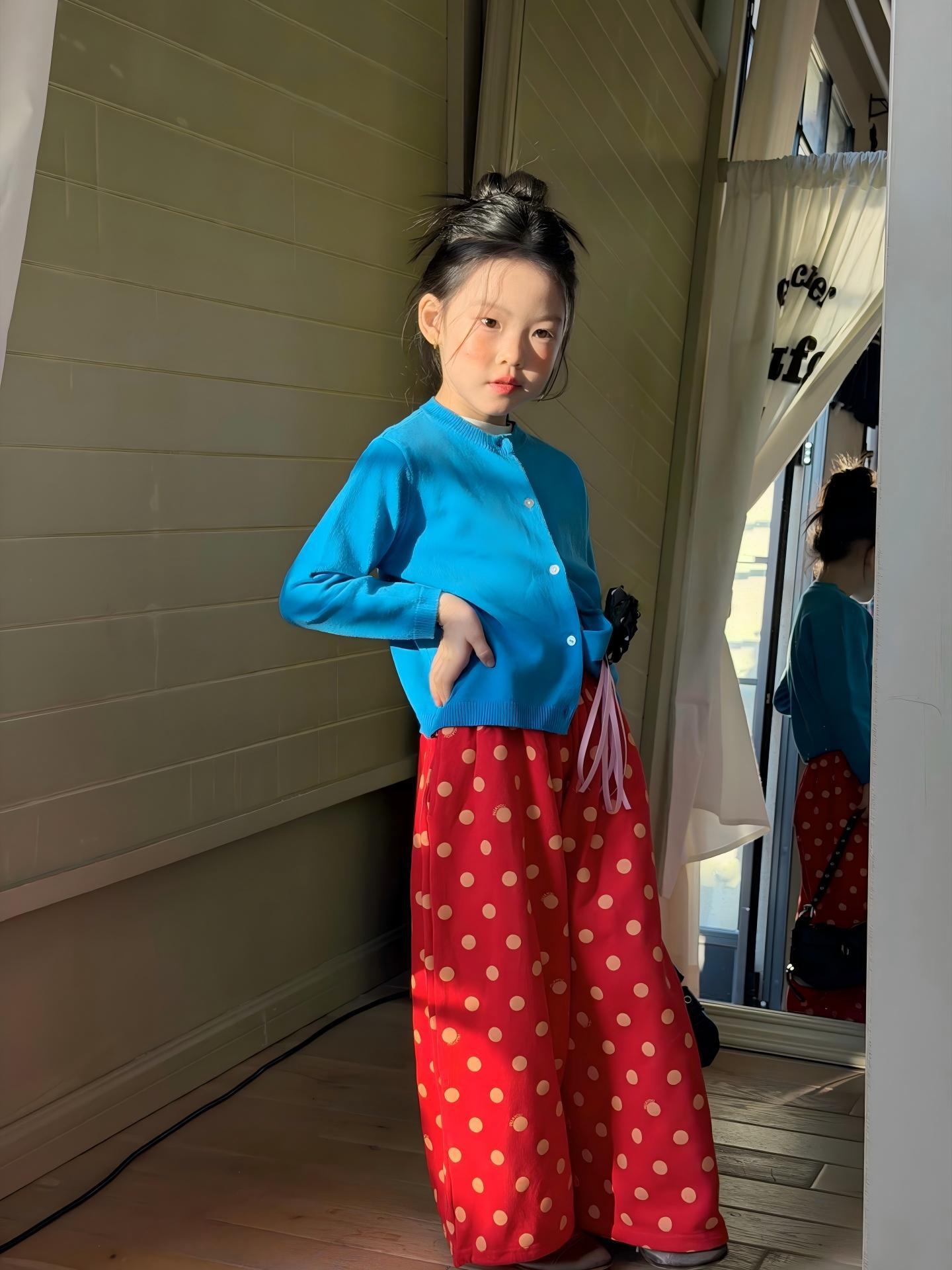 【90-140cm】女の子 ニットカーディガン/ドット柄 パンツ お出かけ 可愛い