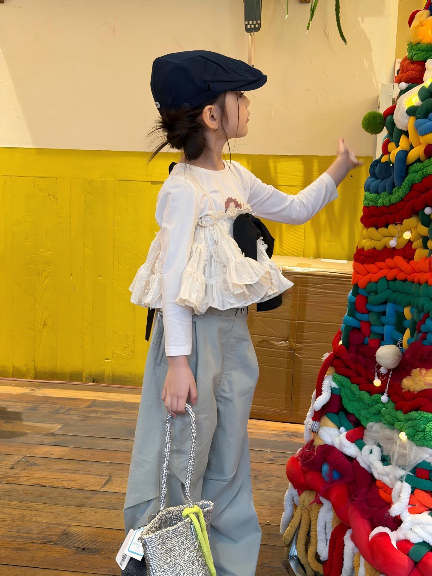 【90-140cm】キャミソール or 長袖Tシャツ 女の子 おしゃれ リボン付き