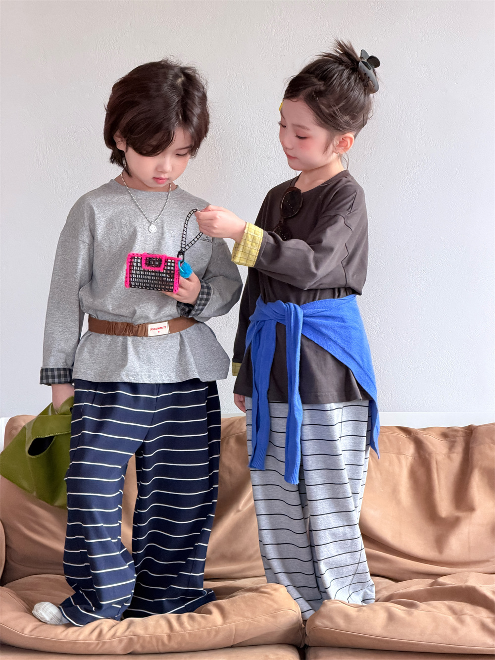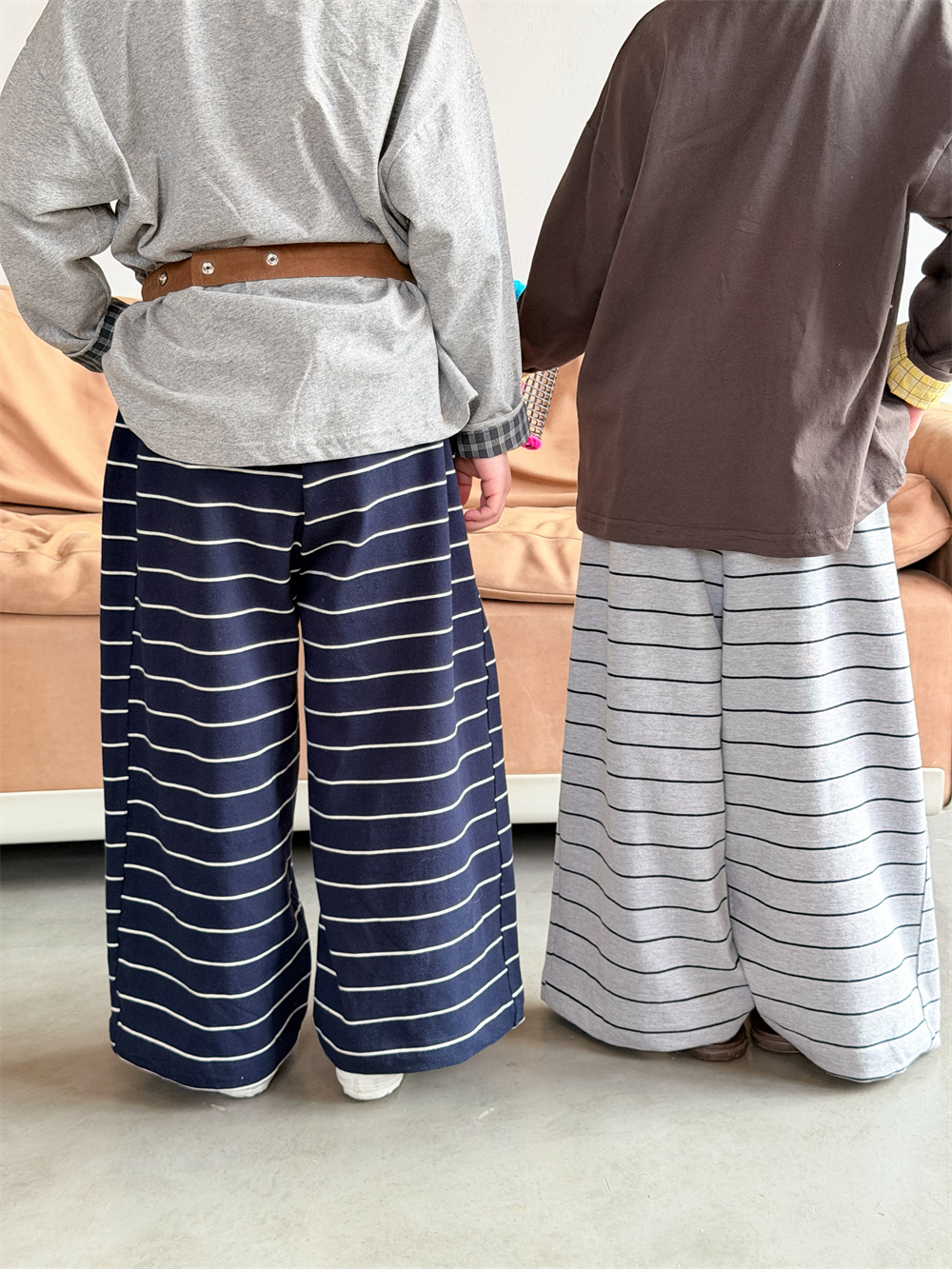 【90-150cm】カジュアルパンツ 男女兼用 ボーダー柄 ワイドパンツ