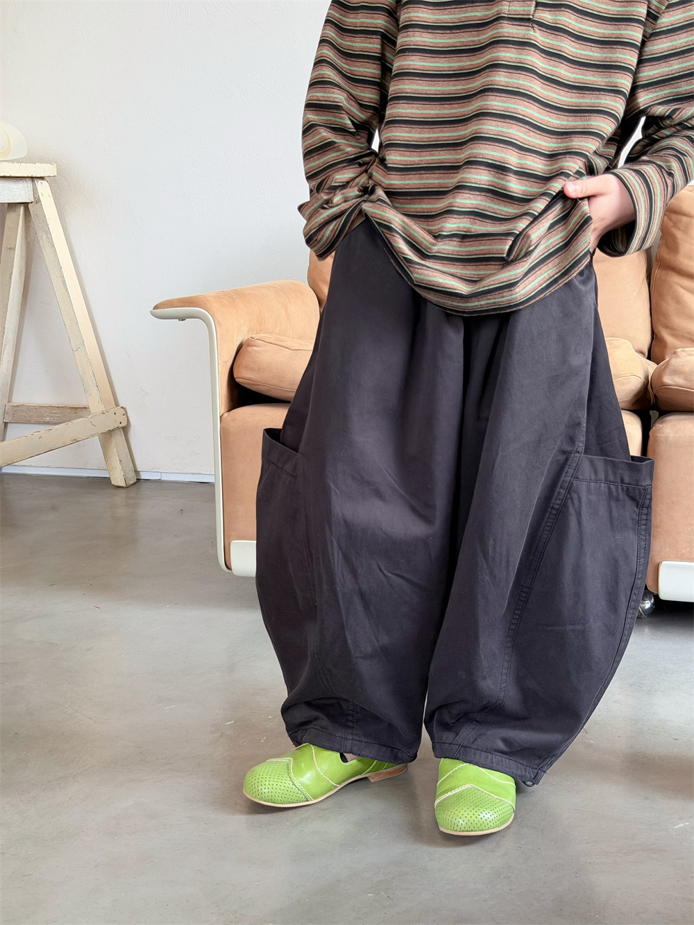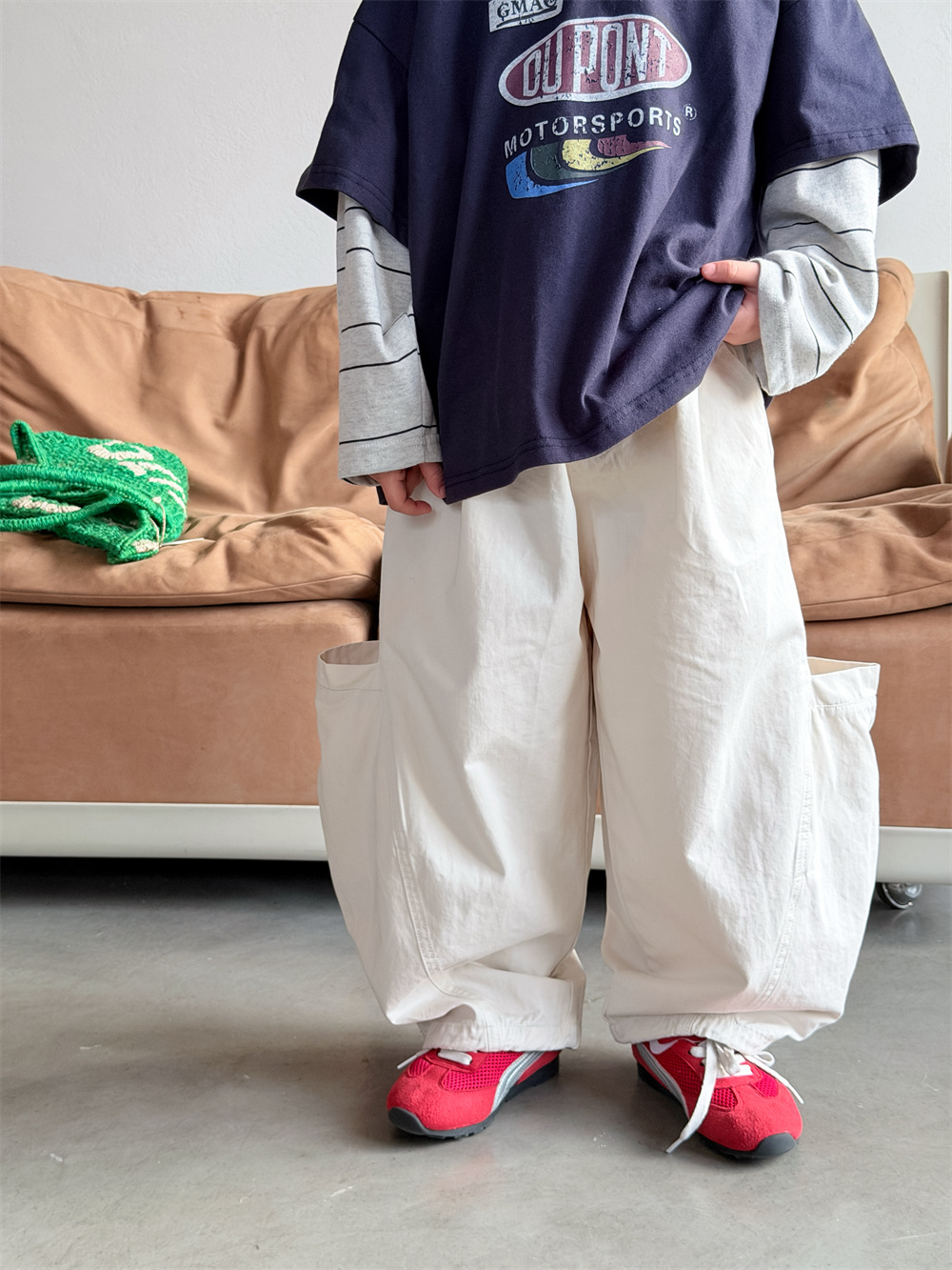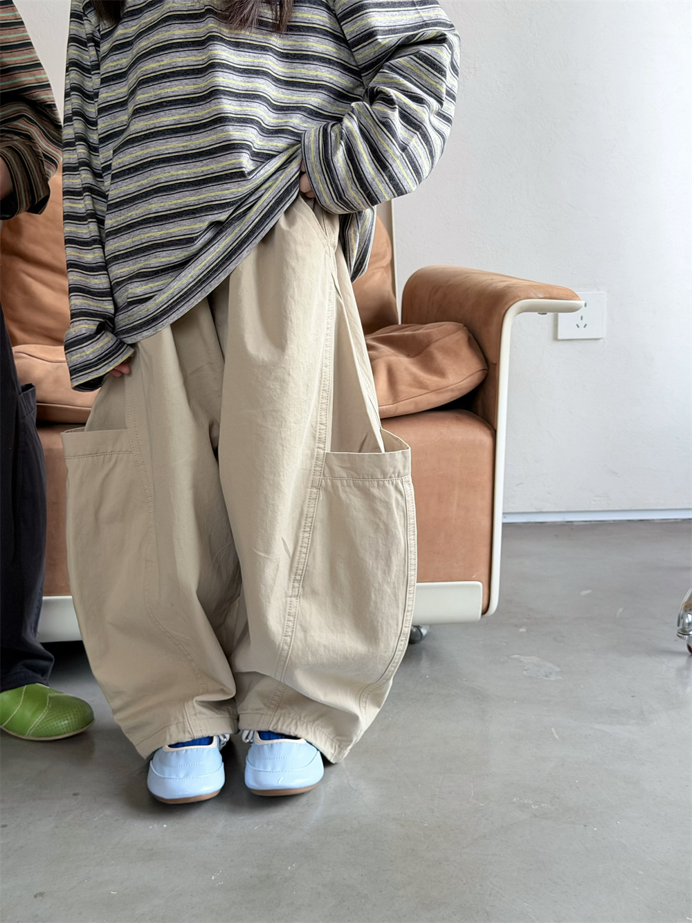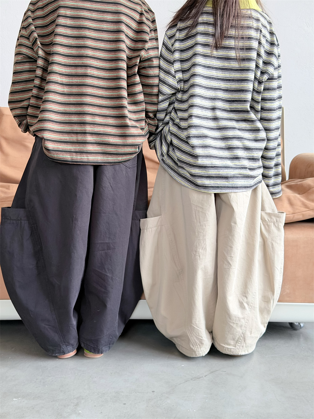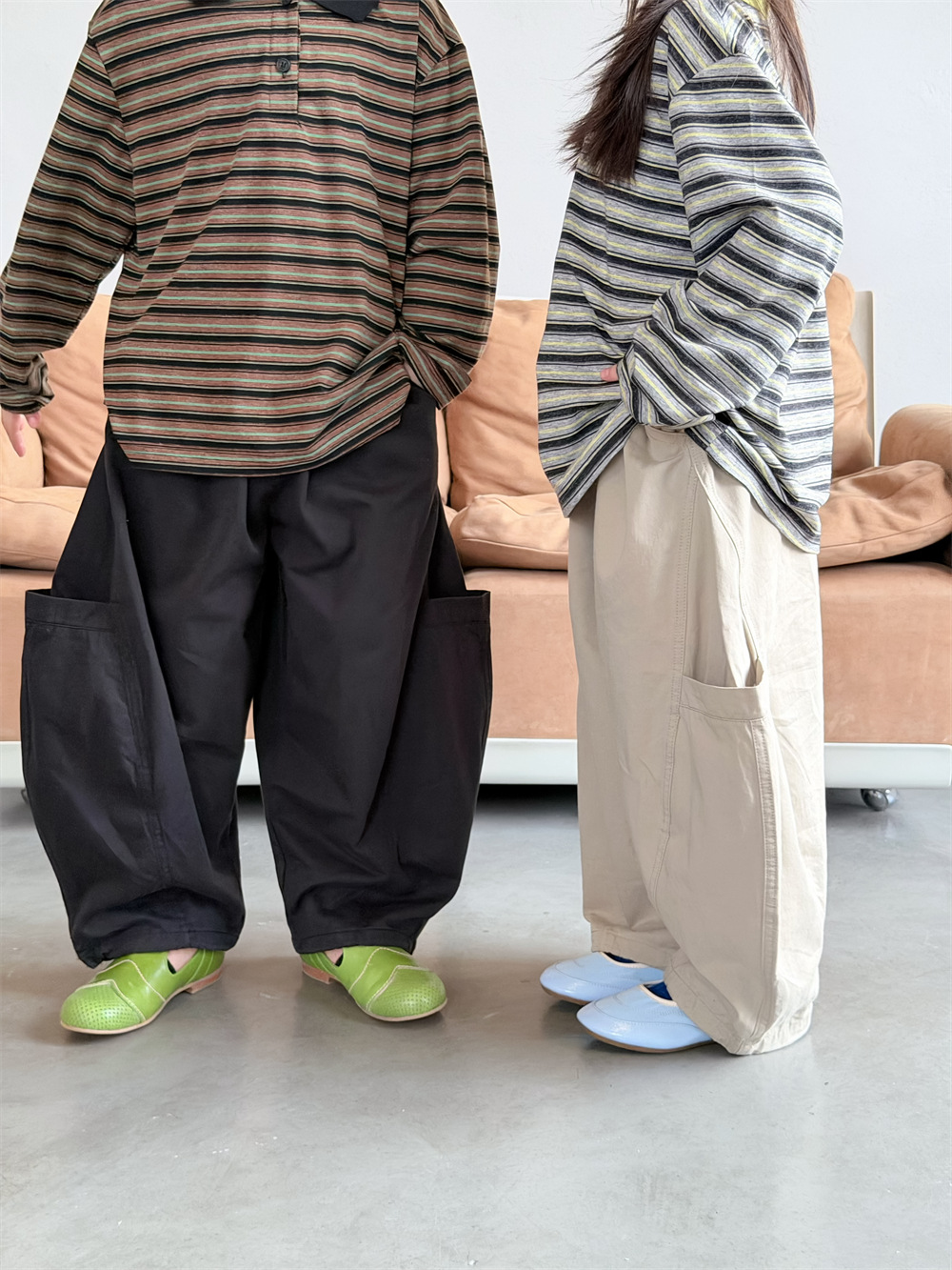 【90-150cm】カーブパンツ ポケットデザイン カジュアル 韓国風 ロングパンツ