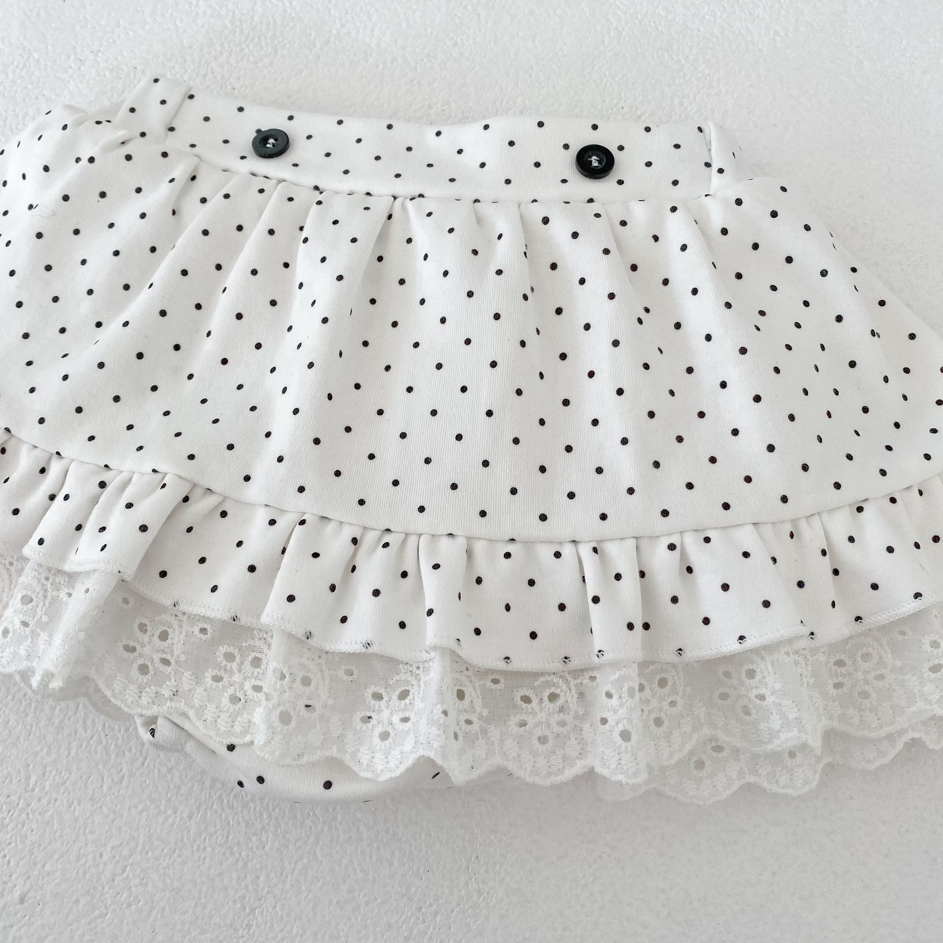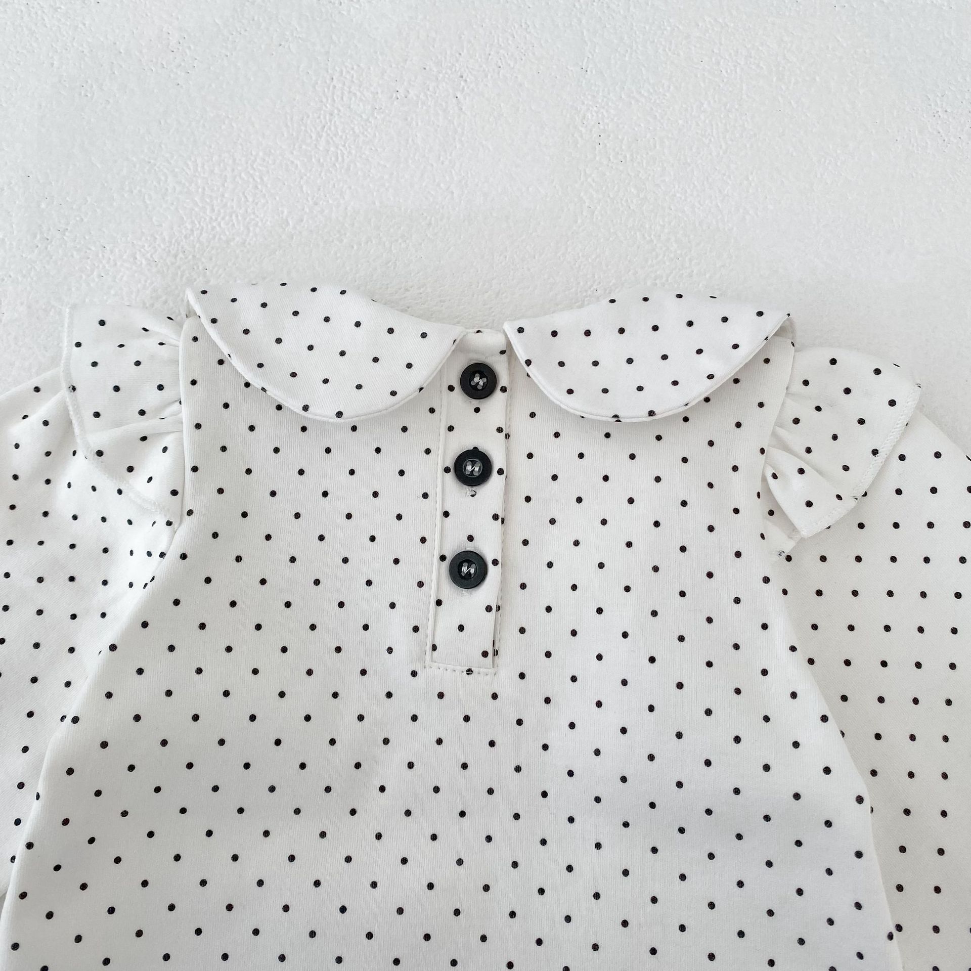 【73-110cm】二点セット 丸襟 トップス+スカート ドット柄 可愛い