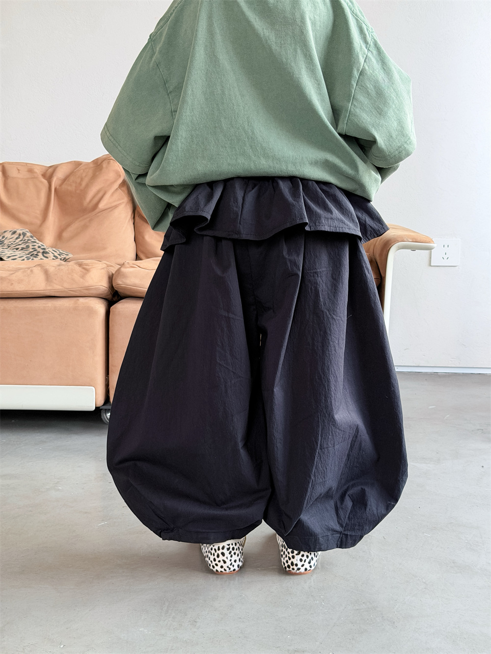 【90-150cm】バルーンパンツ フリルスカート付き フェイクレイヤード カジュアルパンツ