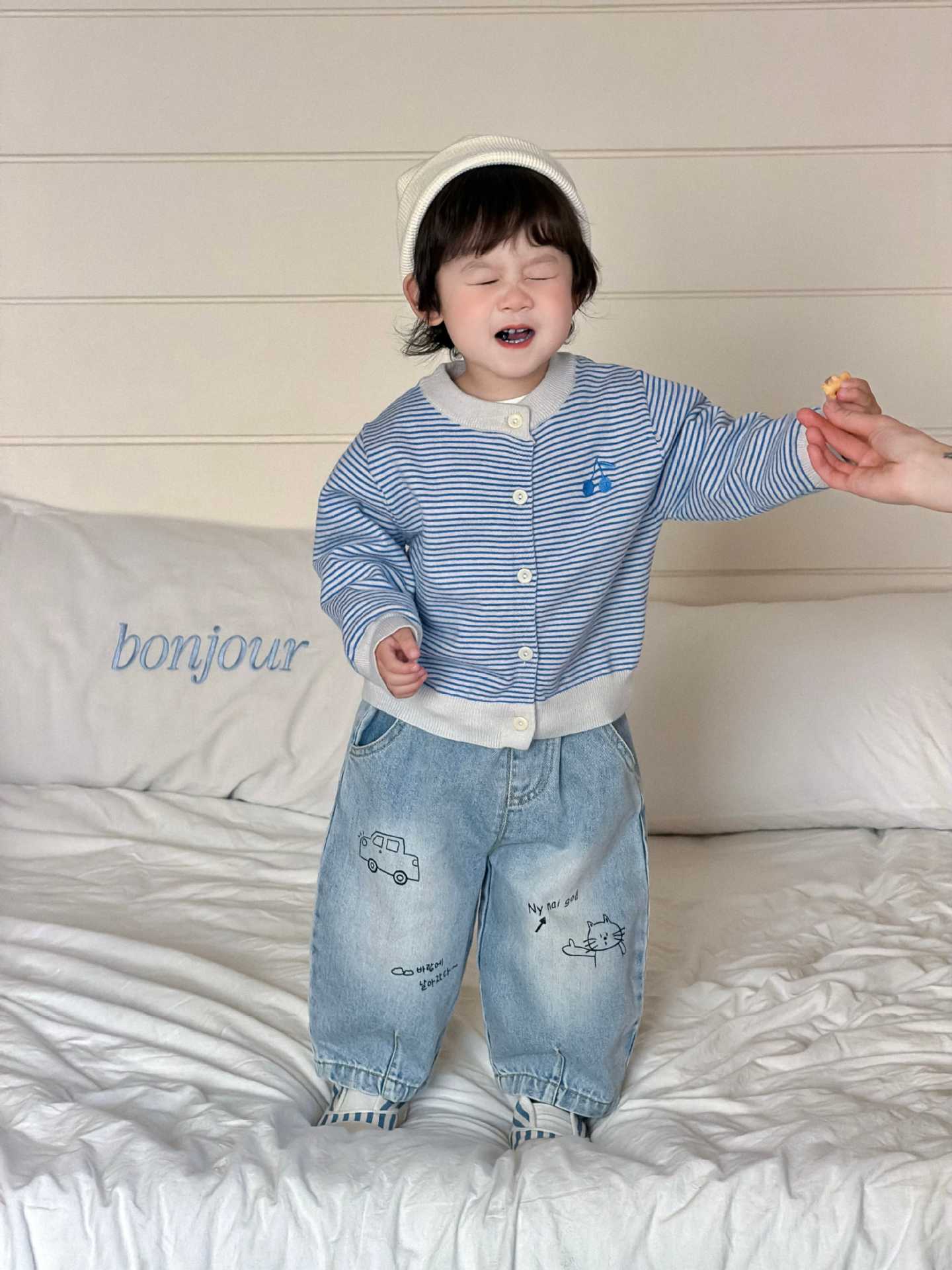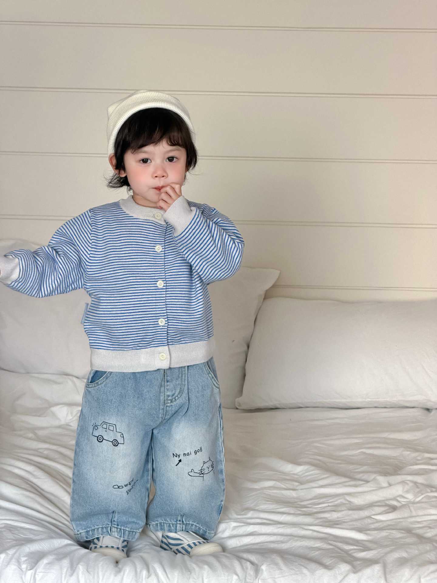 【73-110cm】カーディガン&デニムパンツ&長袖Tシャツ トレンド