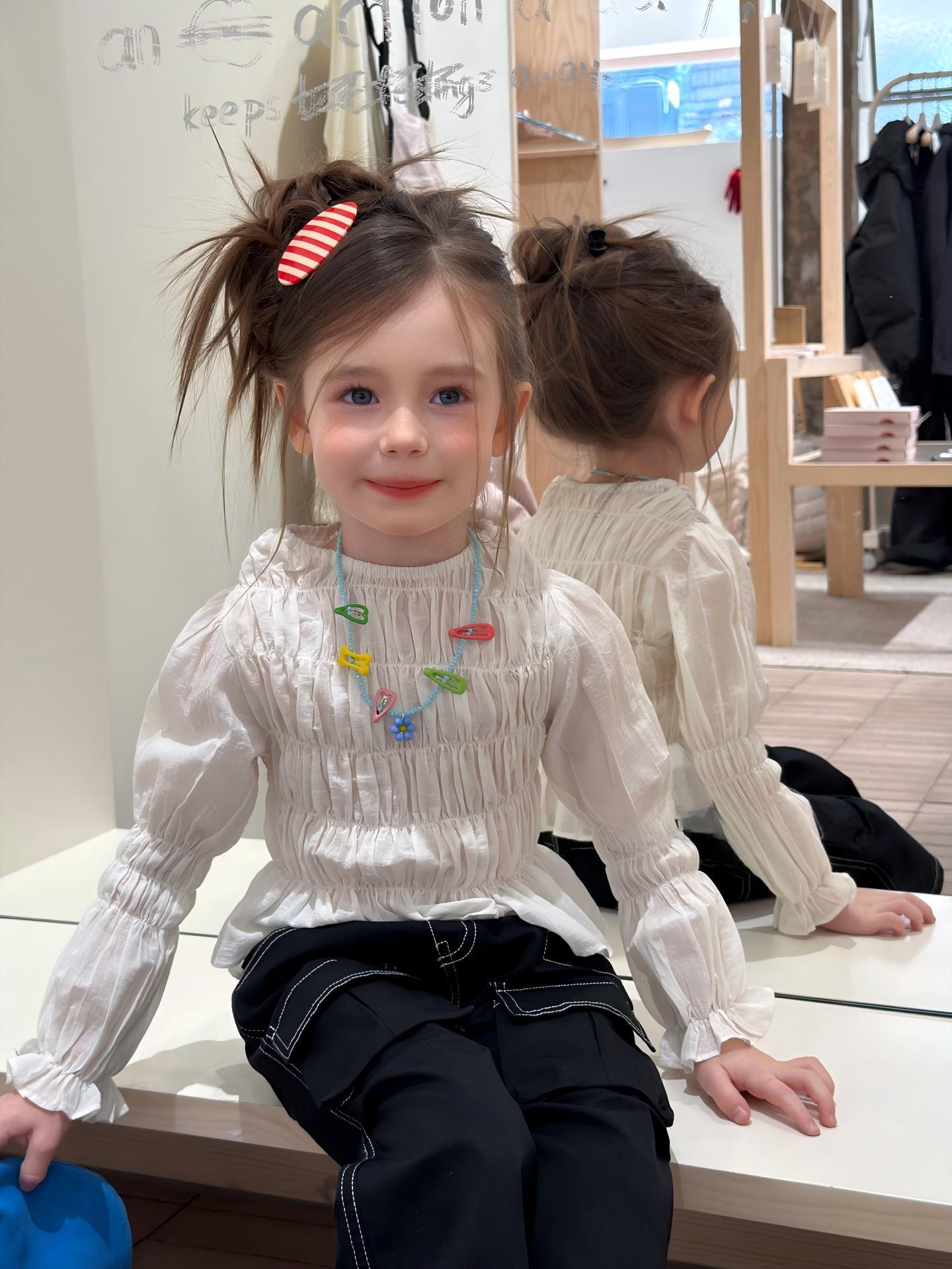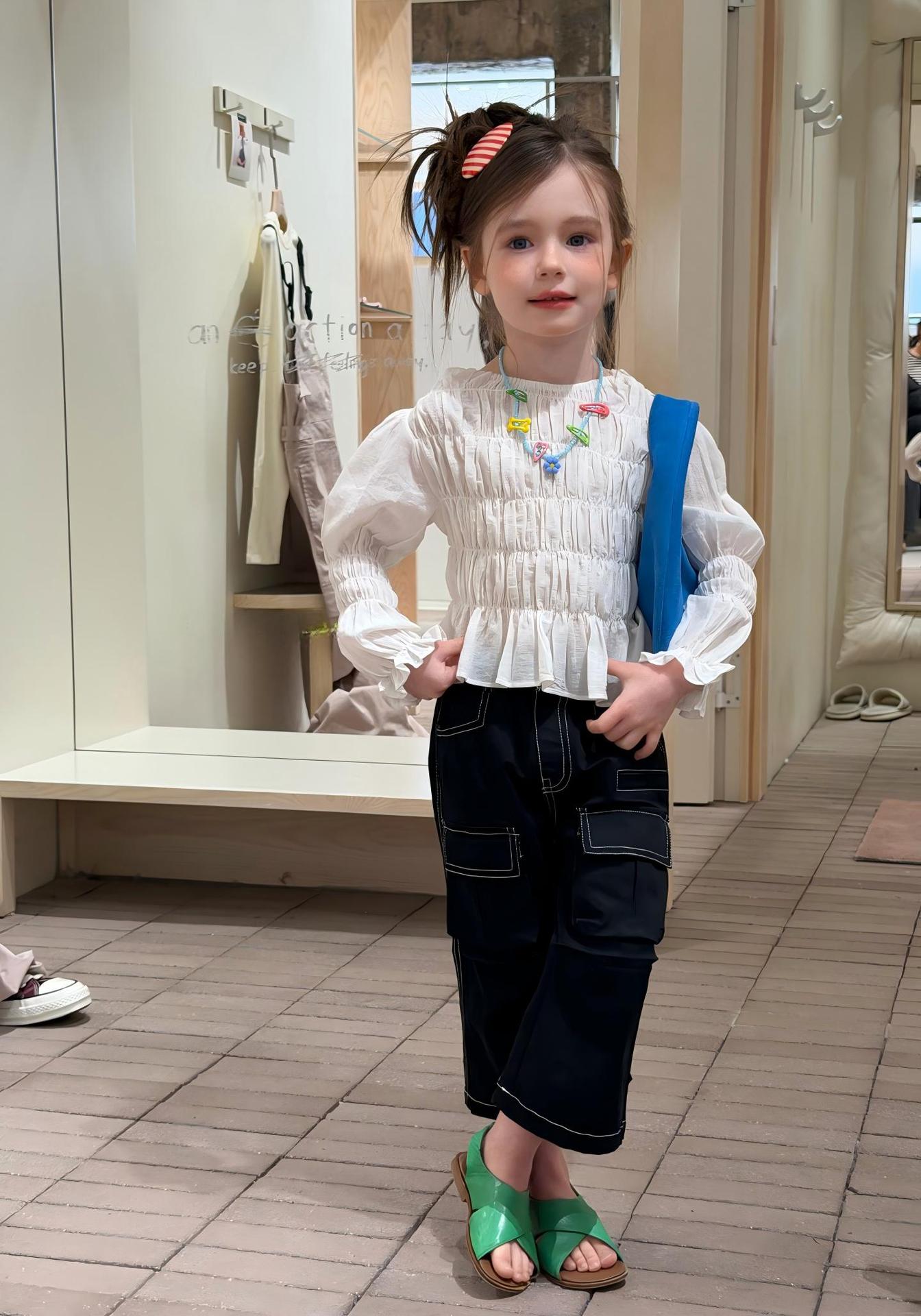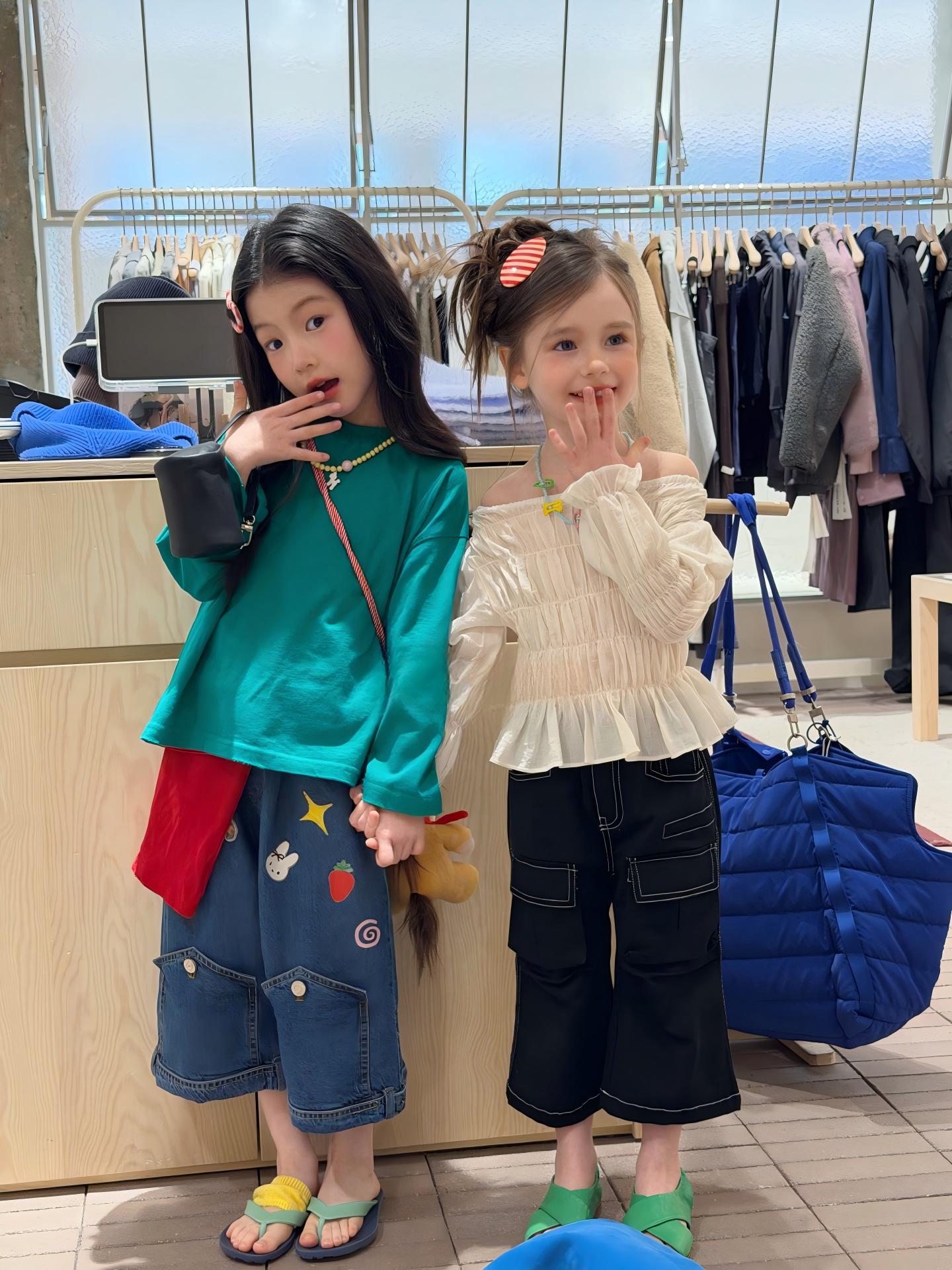 【90-140cm】ブラウス or デニムパンツ 女の子 韓国風 シャーリング