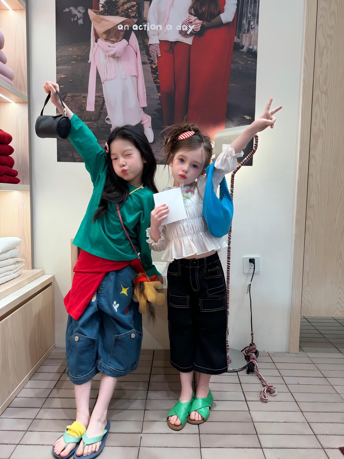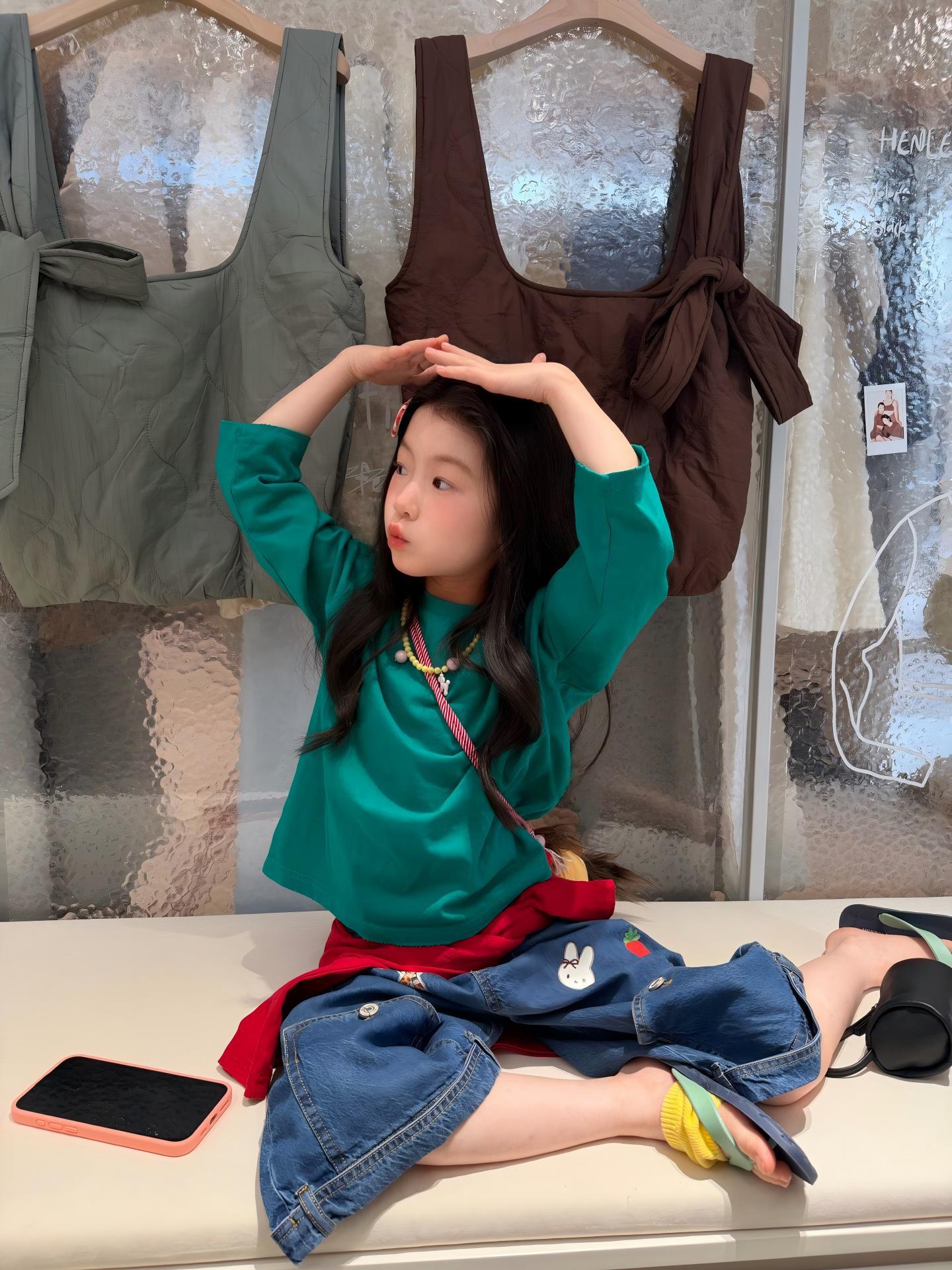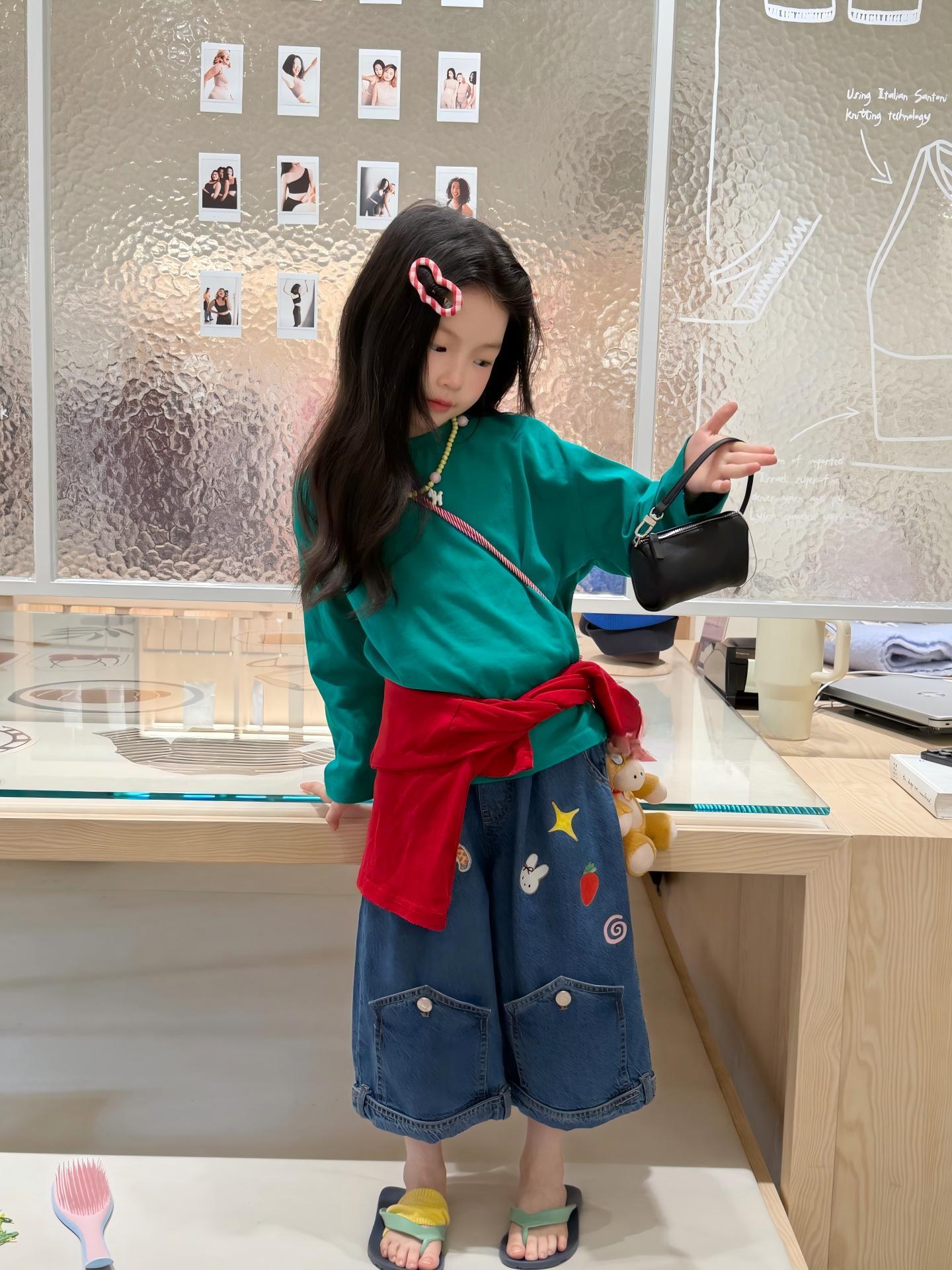 【90-140cm】ブラウス or デニムパンツ 女の子 韓国風 シャーリング