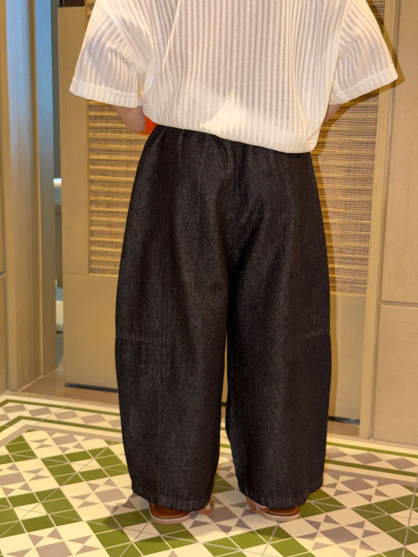 【90-150cm】ワイドデニムパンツ キッズ 無地 男女兼用 カーブデニム ゆったり カジュアル 子供服