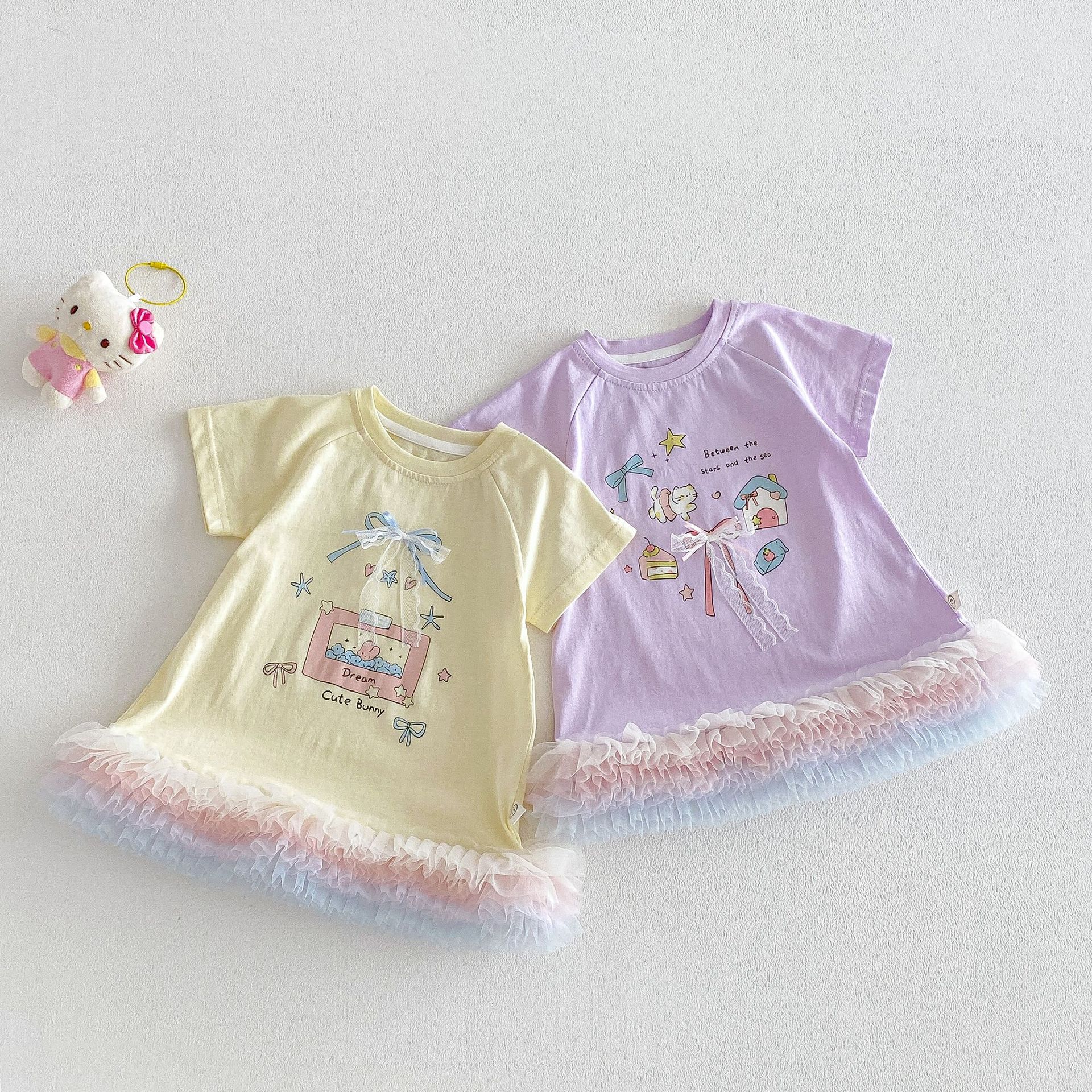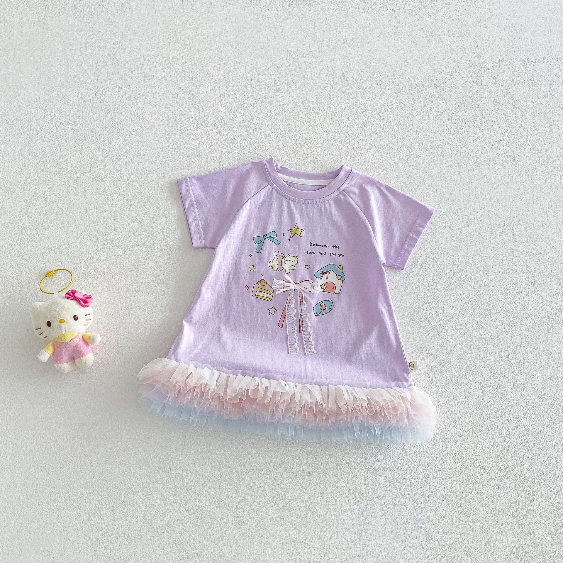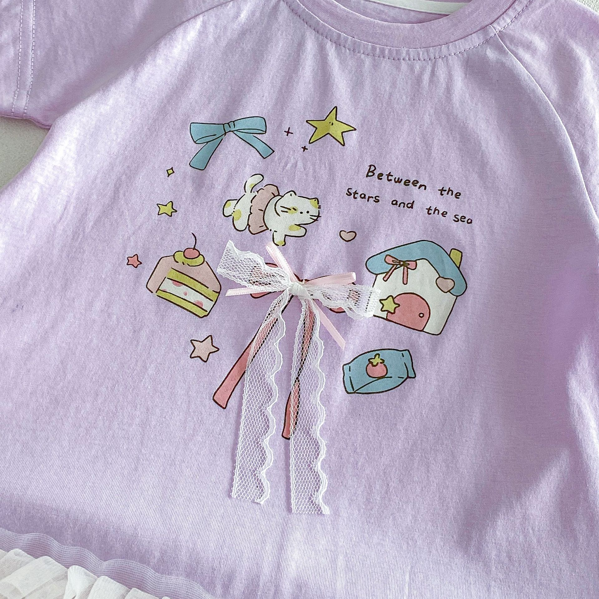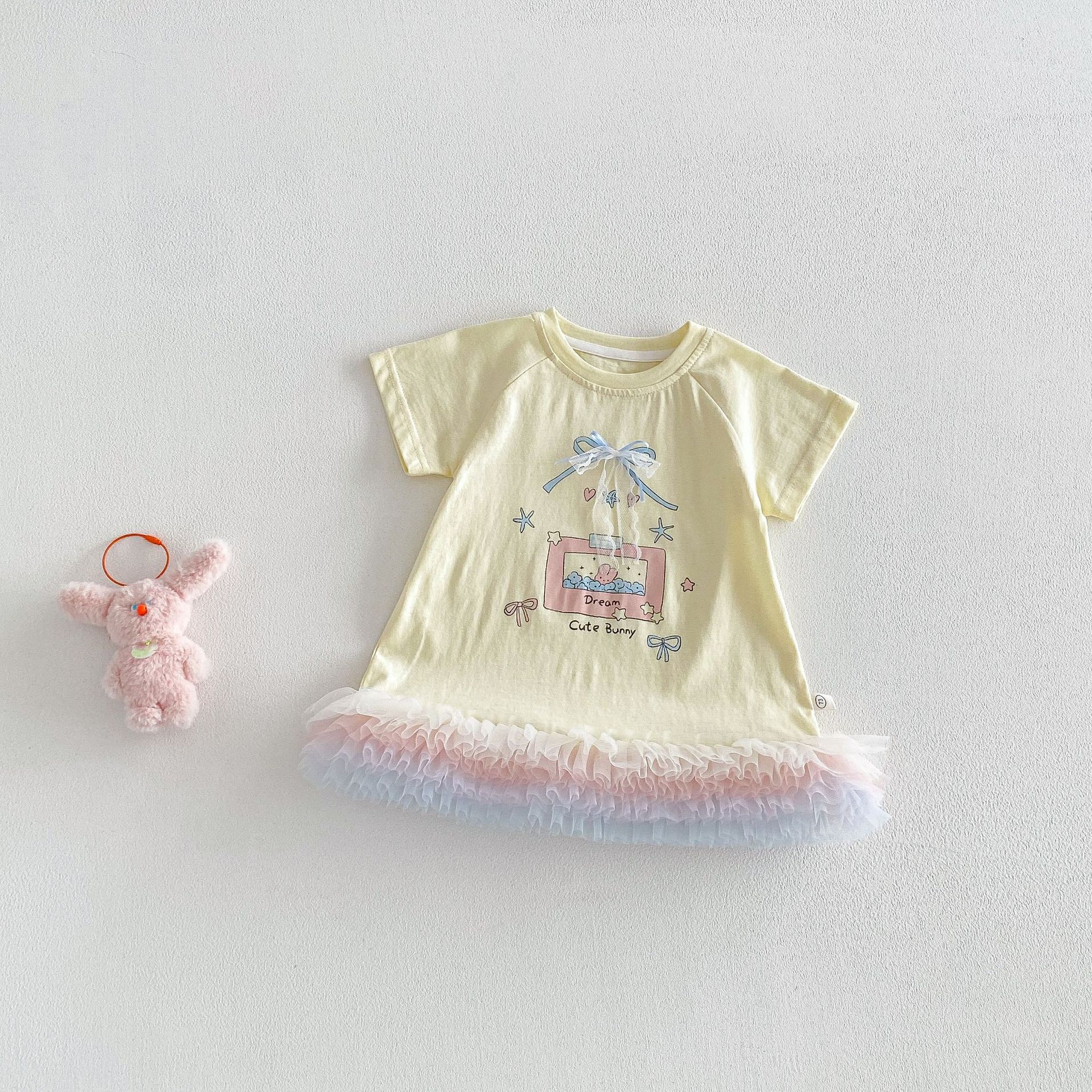 【73-120cm】Tシャツワンピース ベビー 女の子 韓国風 リボンプリント