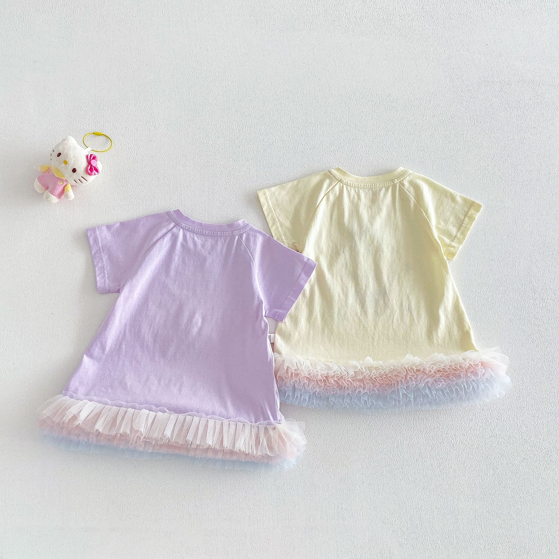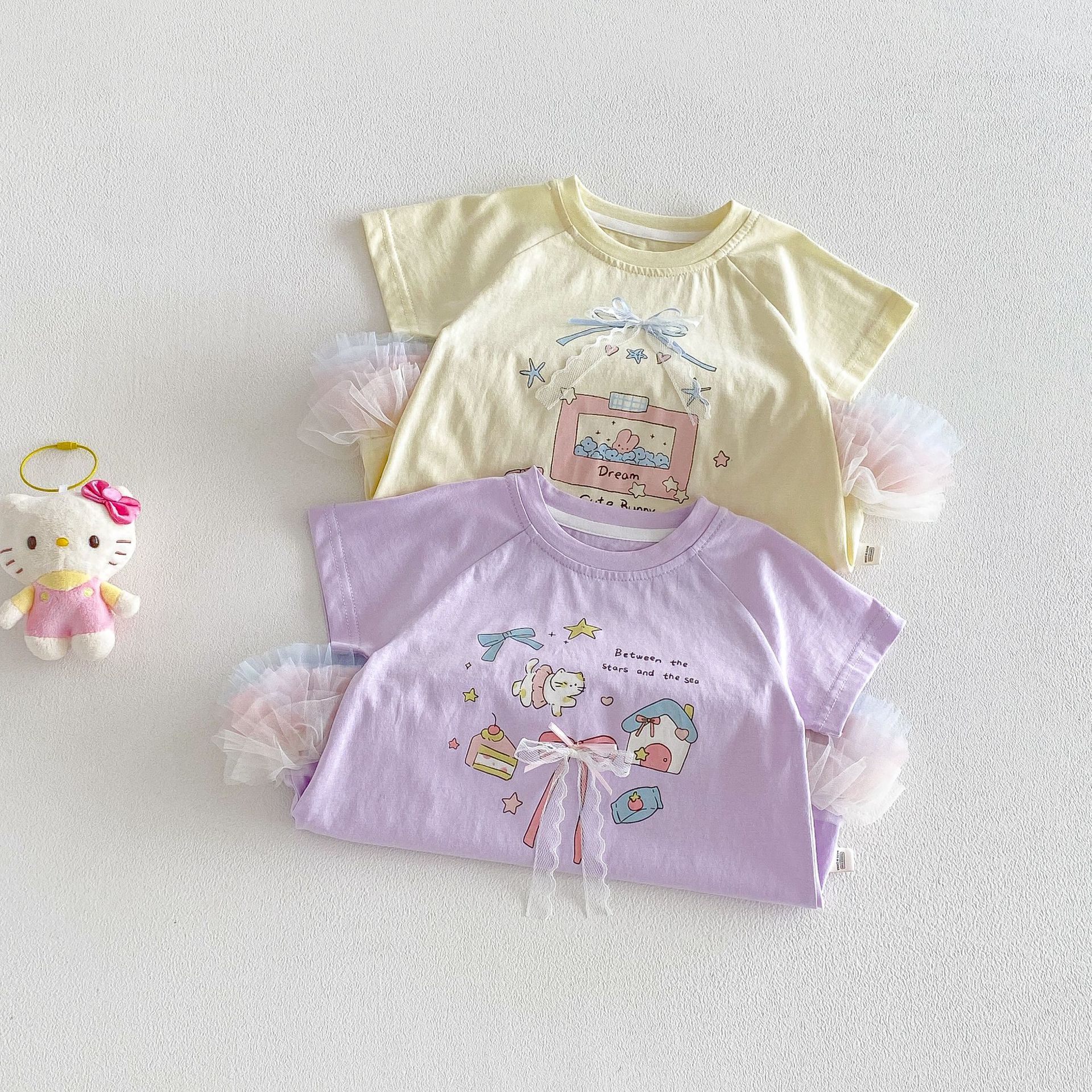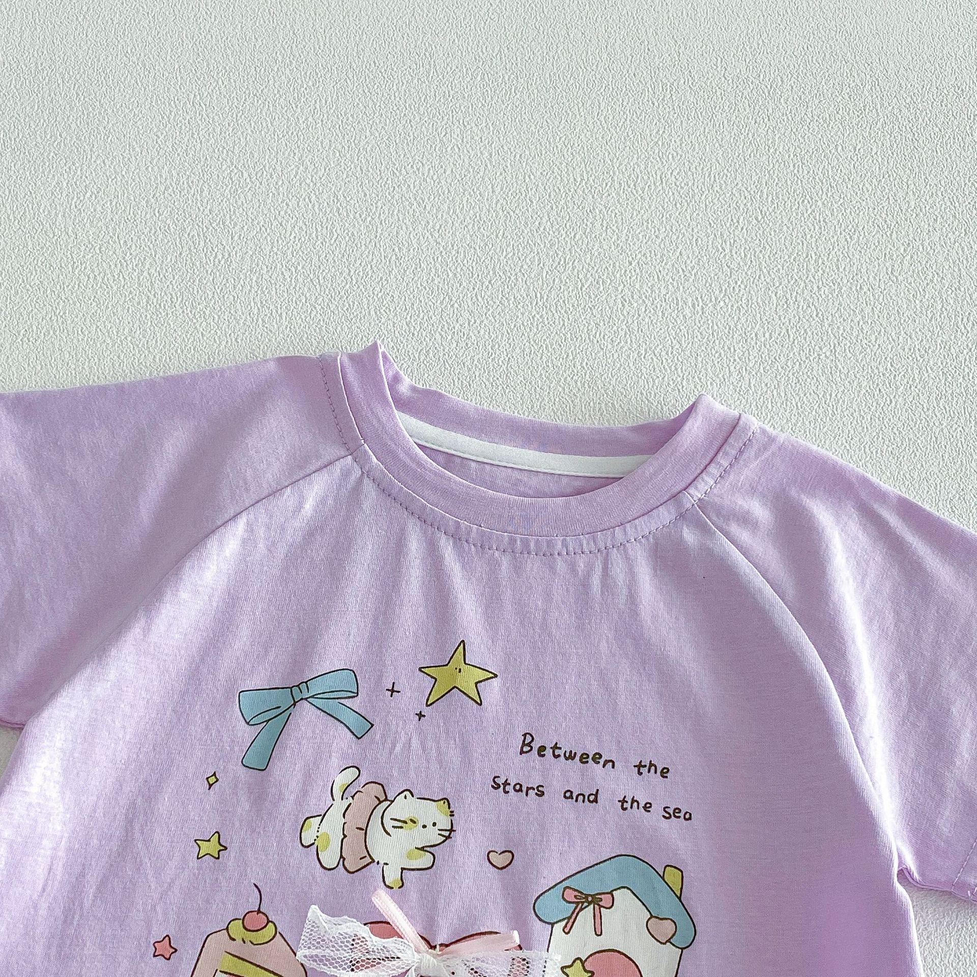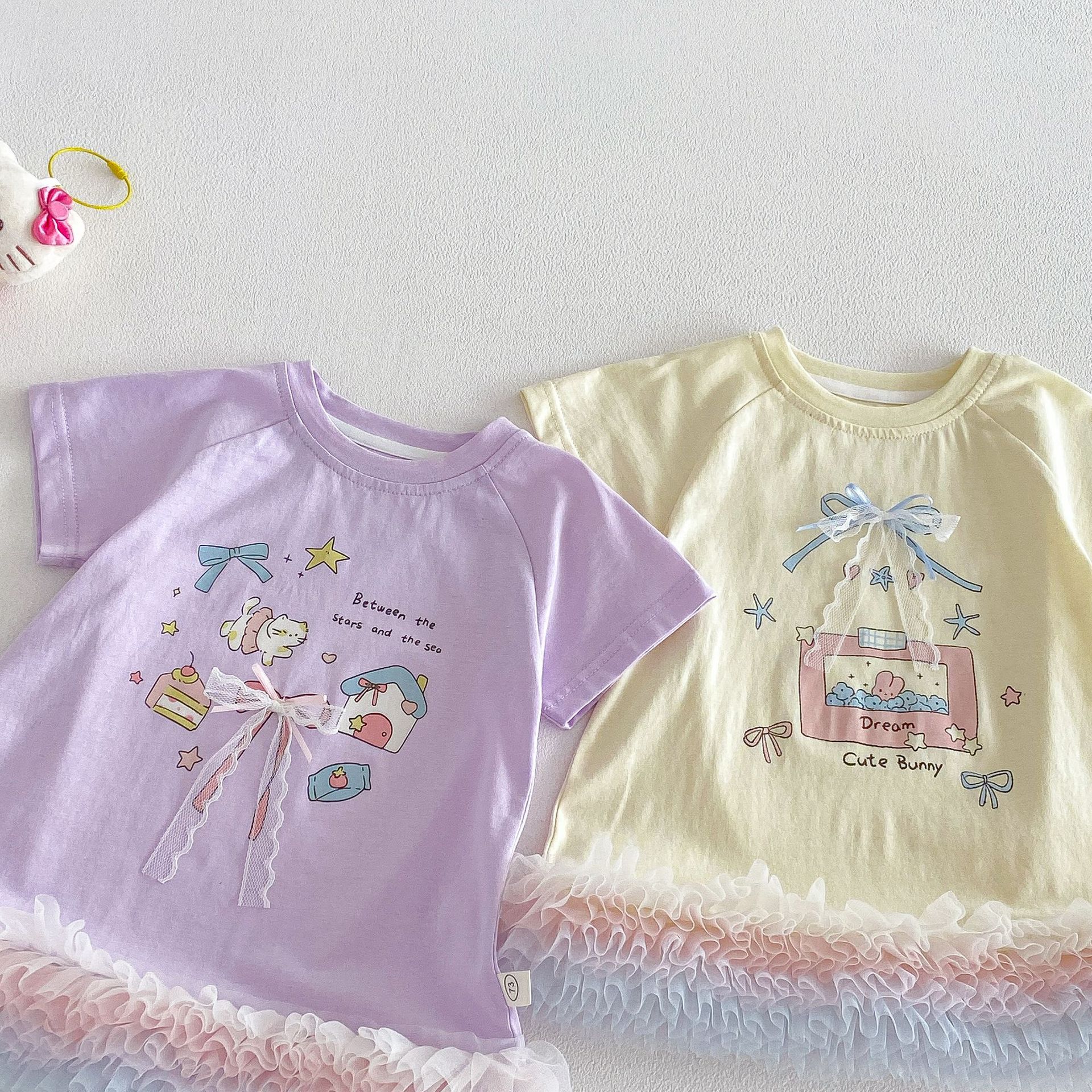 【73-120cm】Tシャツワンピース ベビー 女の子 韓国風 リボンプリント